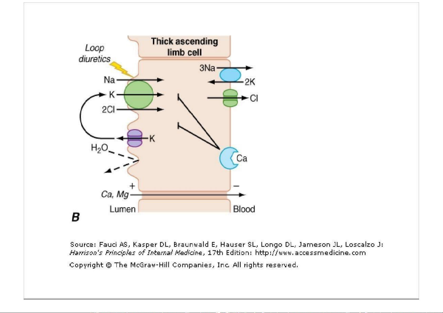 Làm tăng dòng máu chảy qua tủy thận giảm một phần tính ưu trương/ tủy thận, do đó làm giảm tái hấp thu Na+/phần mỏng nhánh lên quai Henlé.