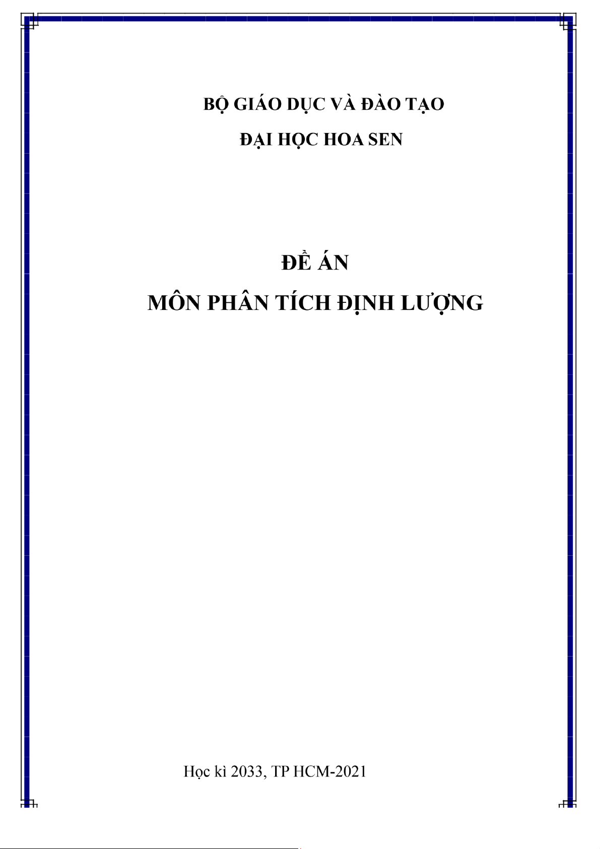 MÔN PHÂN TÍCH ĐỊNH LƯỢNG VII lOMoAR cPSD| 47206417 ĐẠI HỌC HOA SEN
