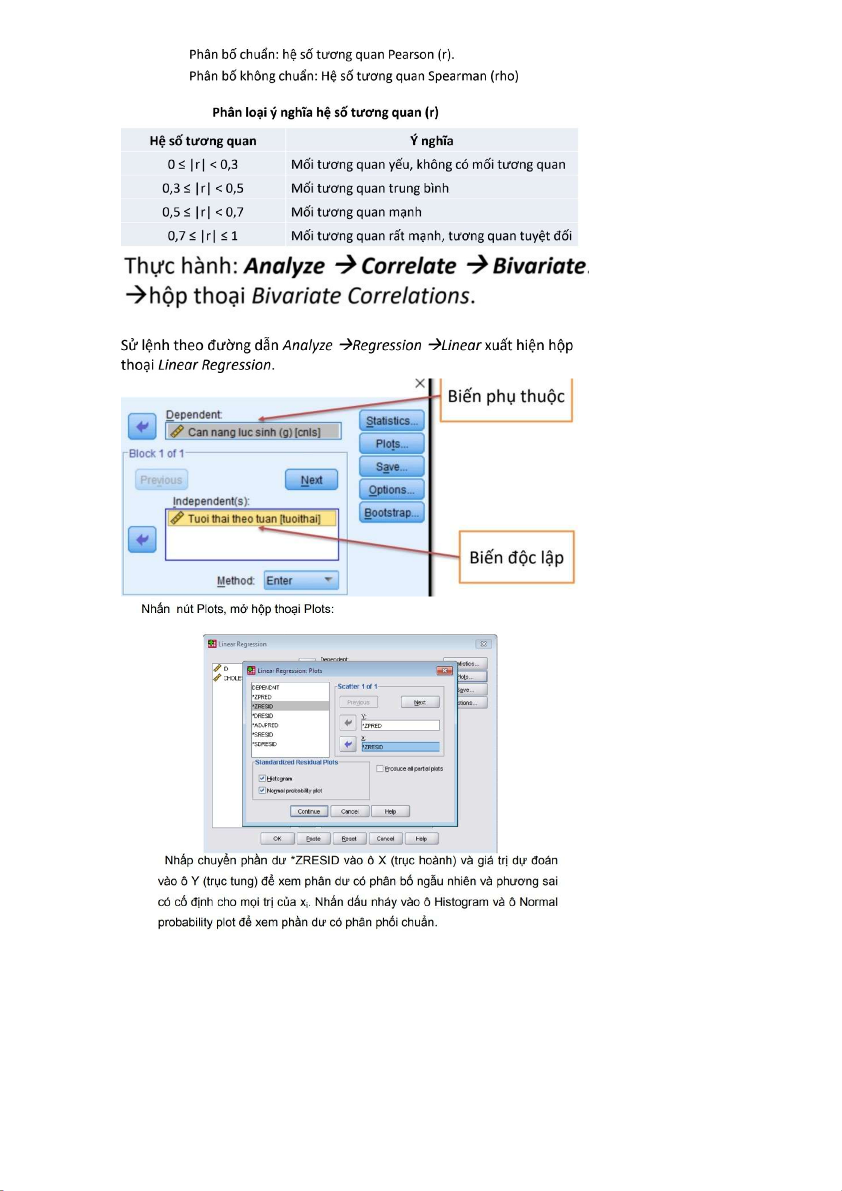 Dependent List. o Plots/ Normality Plots with test. o Nhấn Continue. Nhấn Ok.