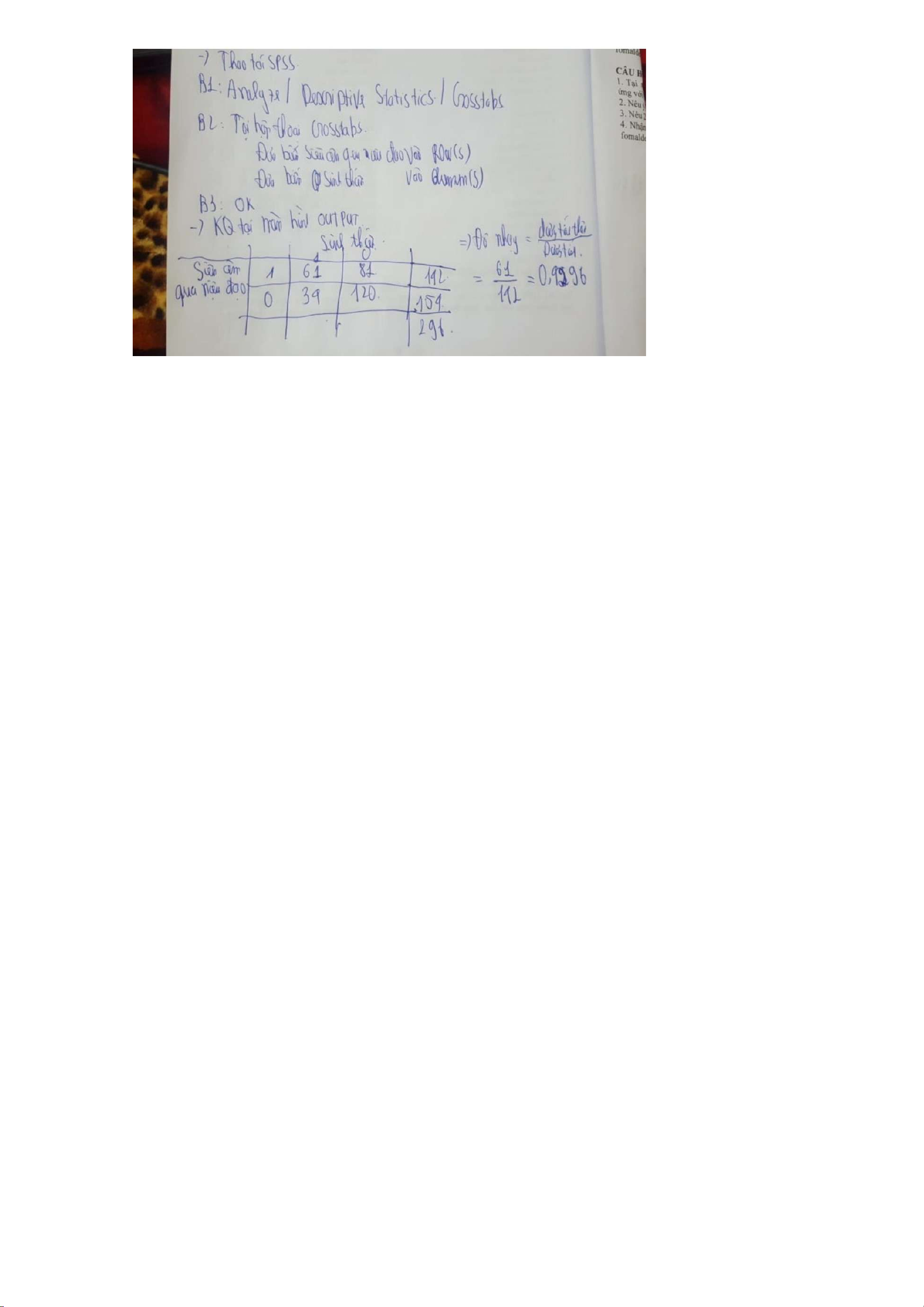Vào Analyze/ Descriptive Statistics/ Crosstabs