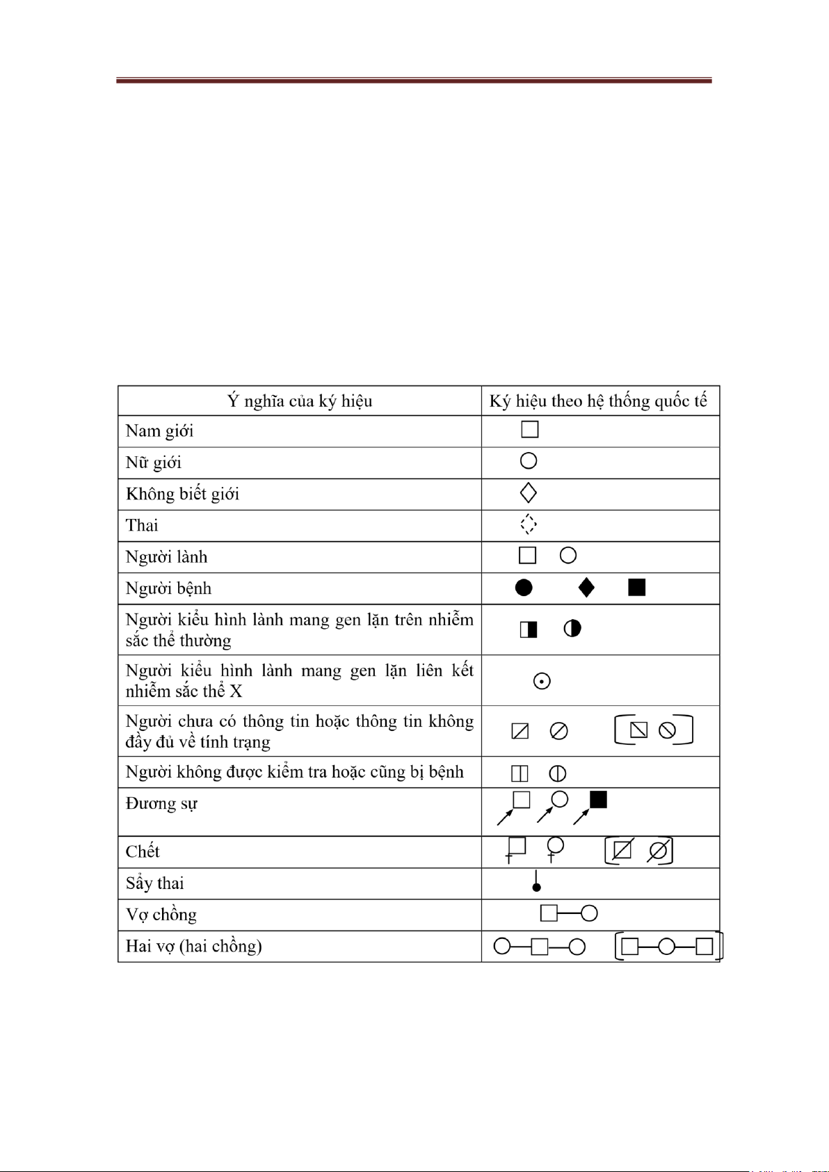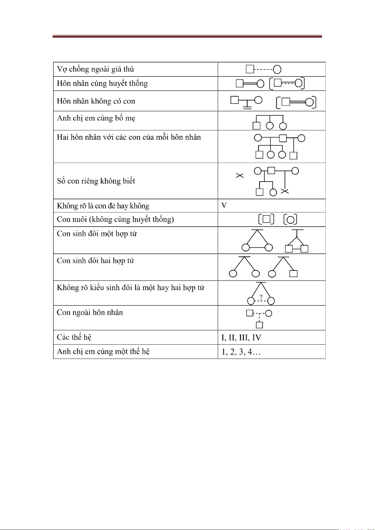 Bảng 1.1. Các ký hiệu dùng trong lập phả hệ. lOMoAR cPSD| 59981978 Sinh học – Di truyền