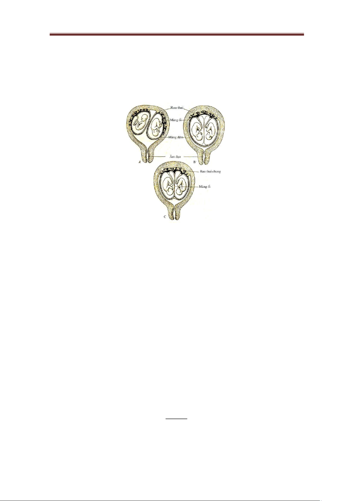 màng ệm chung, màng ối riêng. C: Rau thai và màng ệm chung, màng ối dính.