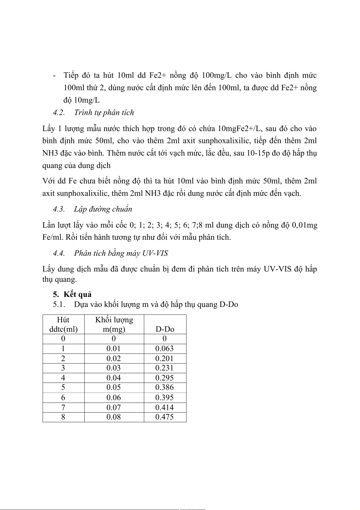 Lấy dung dịch mẫu đã được chuẩn bị đem đi phân tích trên máy UV-VIS độ hấp thụ quang. 5. Kết quả