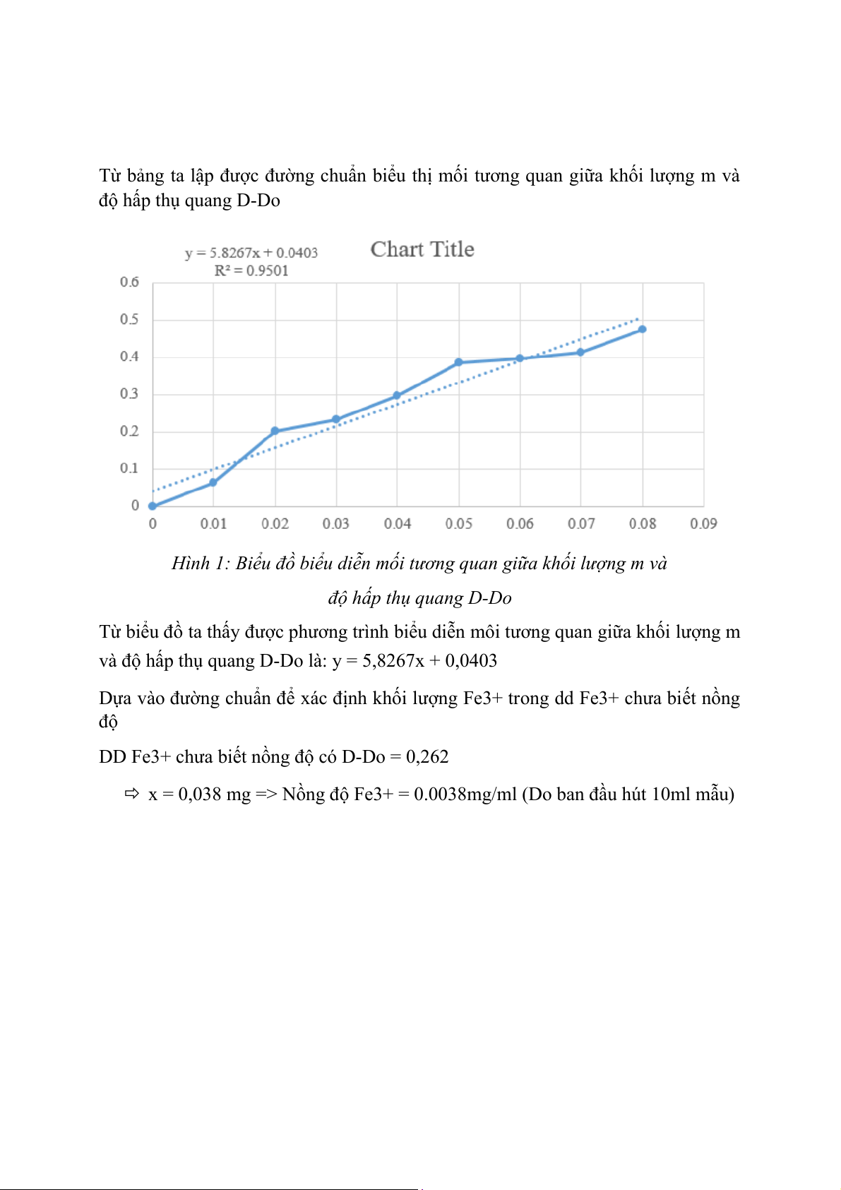 Từ bảng ta lập được đường chuẩn biểu thị mối tương quan giữa khối lượng m và độ hấp thụ quang D-Do