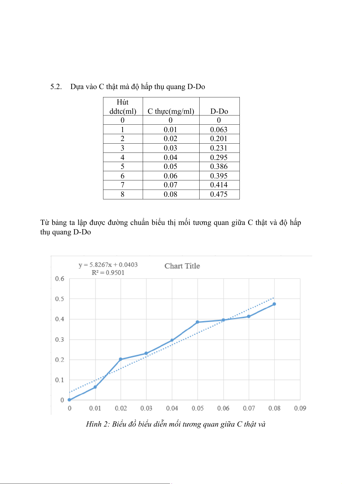Từ bảng ta lập được đường chuẩn biểu thị mối tương quan giữa C thật và độ hấp thụ quang D-Do