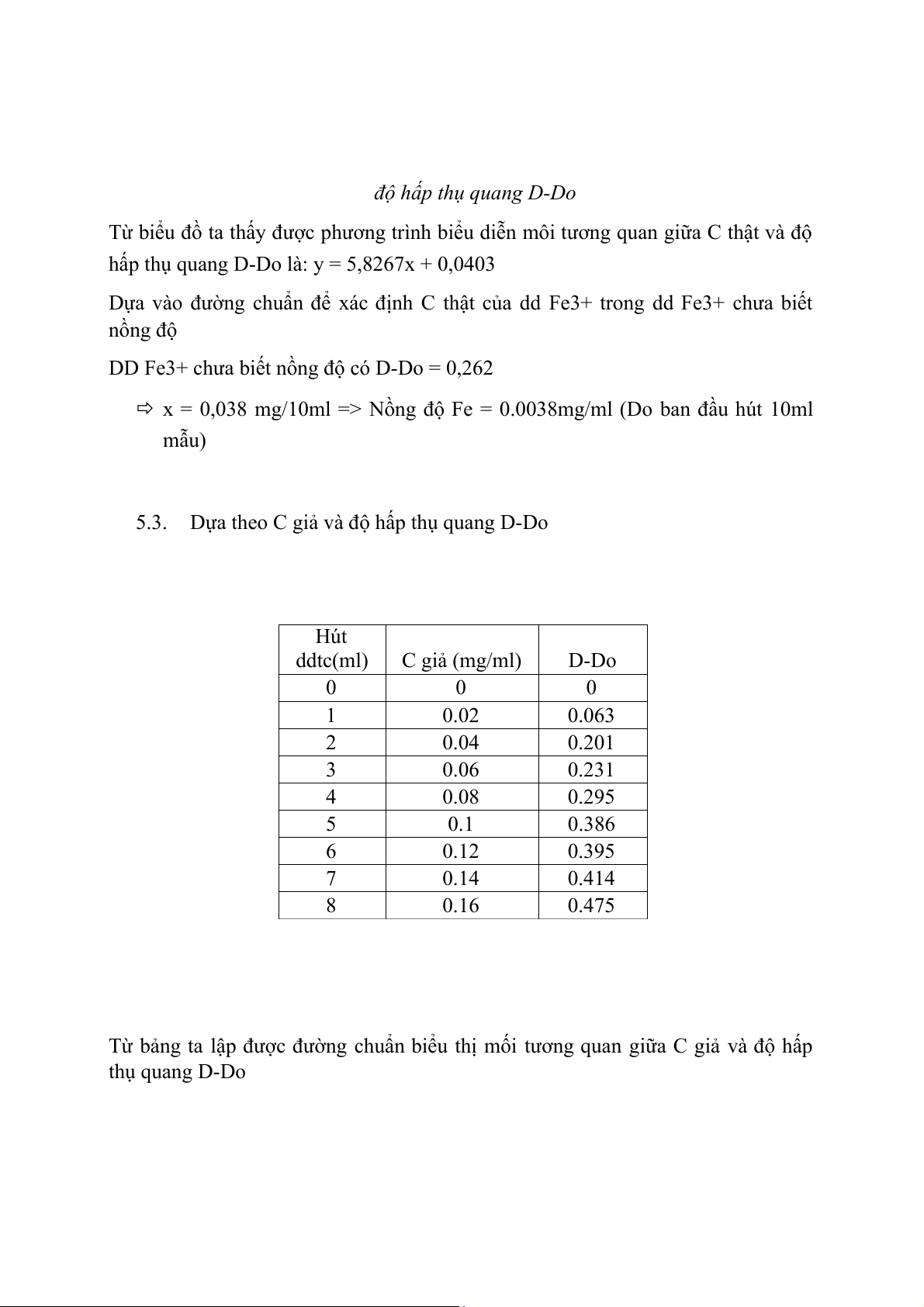 DD Fe chưa biết nồng độ có D-Do = 0,262 x = 0,0761mg/ml