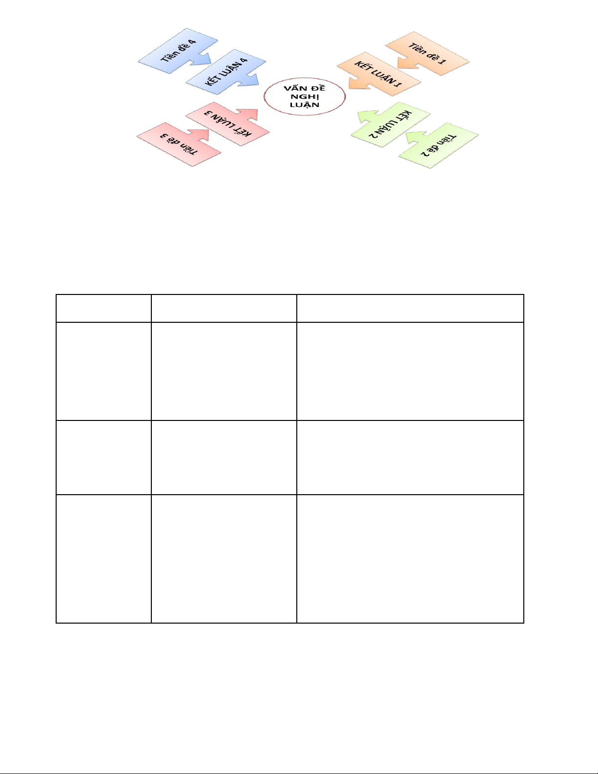 đề ấy với vấn đề nghị luận để đưa ra kết luận hợp lý. Lí lẽ 1: Tiền đề