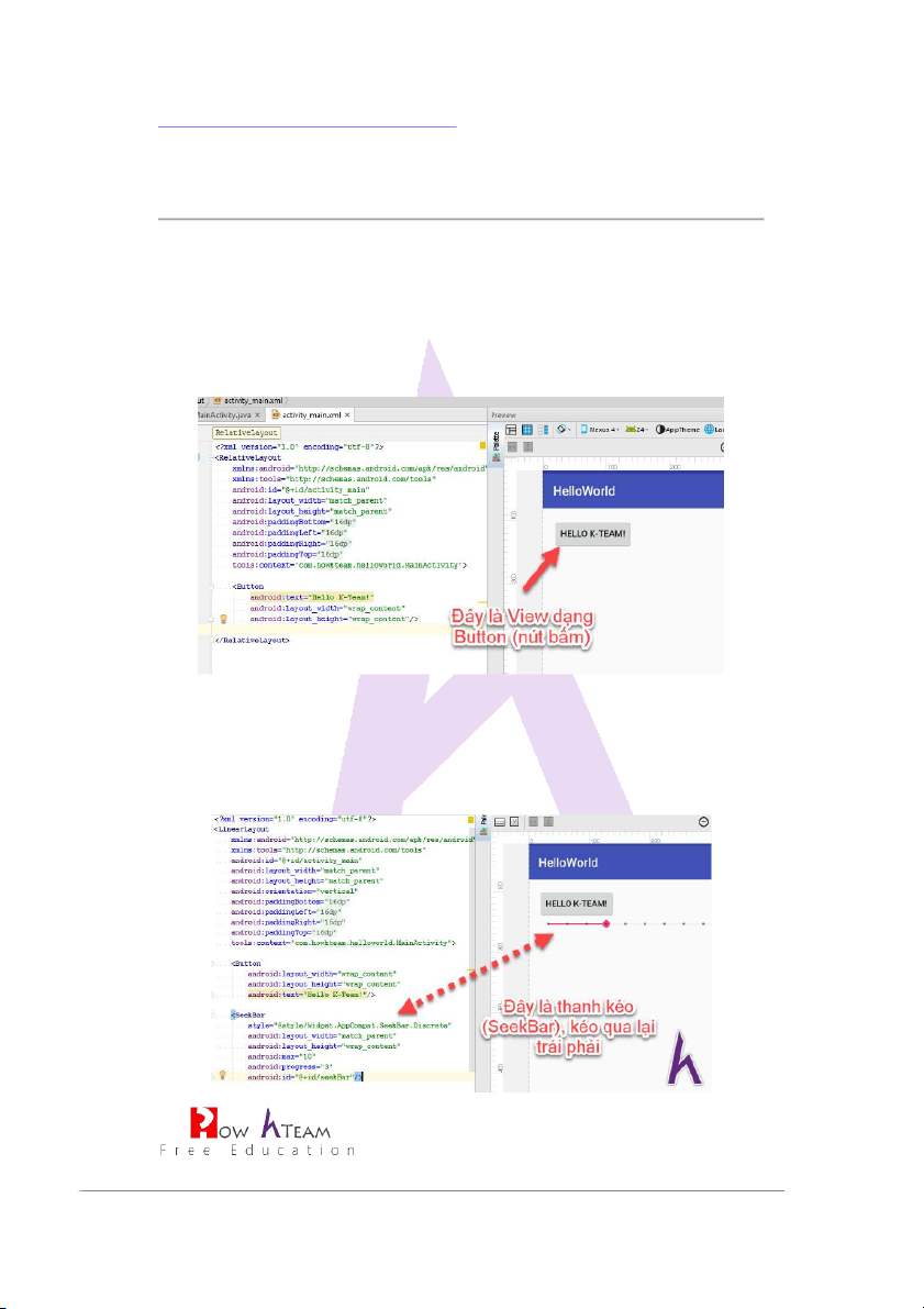 KHÓA LẬP TRÌNH ANDROID CƠ BẢN HOWKTEAM.COM 8 | 17 XML Code: