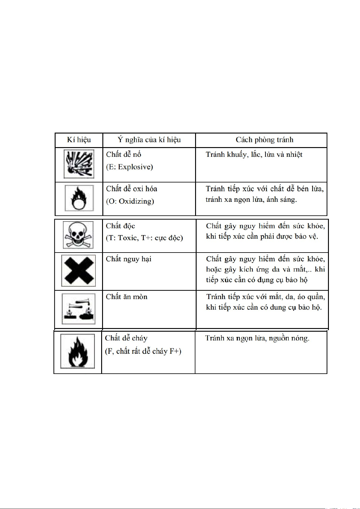 Bảng 1. Kí hiệu và ý nghĩa của một số hóa chất nguy hiểm