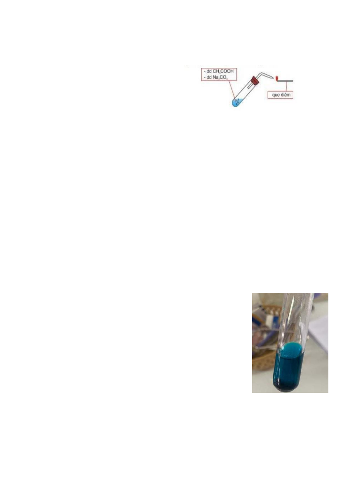 2. Nhỏ vài giọt dung dịch acid CH3COOH 0,1N, vài tinh thể Na2CO3 tinh thể