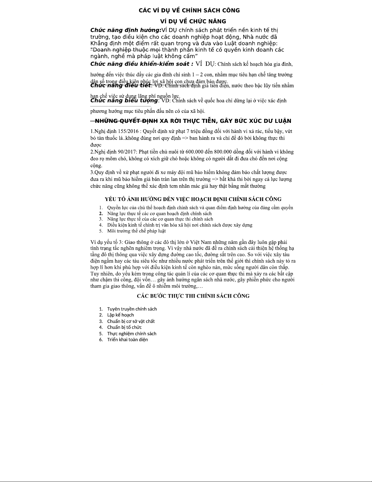 CÁC VÍ DỤ VỀ CHÍNH SÁCH CÔNG: CHỨC NĂNG VÀ THỰC TIỄN