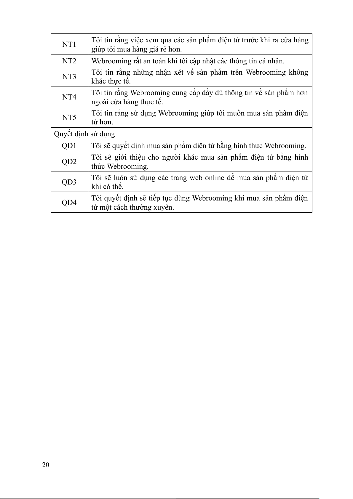 Tôi tin rằng sử dụng Webrooming giúp tôi muốn mua sản phẩm điện NT5 tử hơn. Quyết định sử dụng QD1