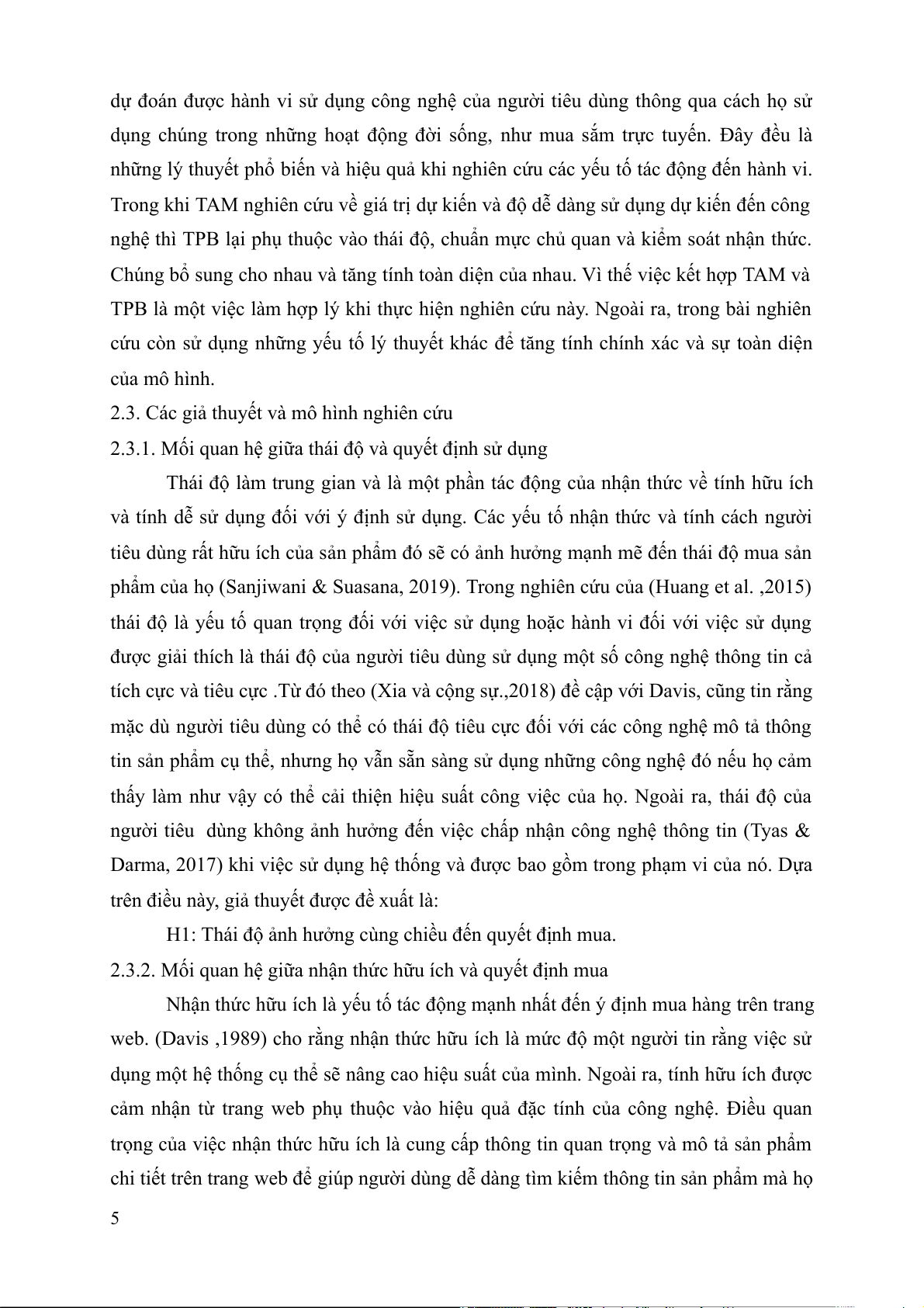 thể sẽ xảy ra sự chấp nhận thấp. Davis (1989) khẳng định ý định hành vi của một