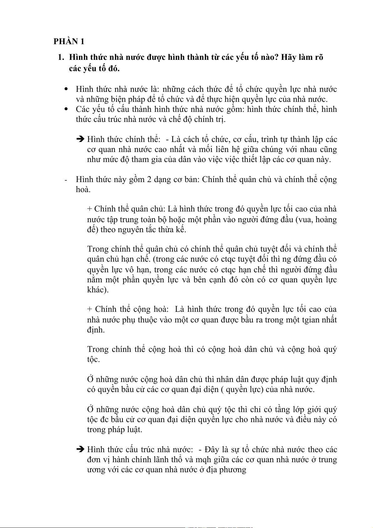 1. Hình thức nhà nước được hình thành từ các yếu tố nào? Hãy làm rõ các yếu tố đó.