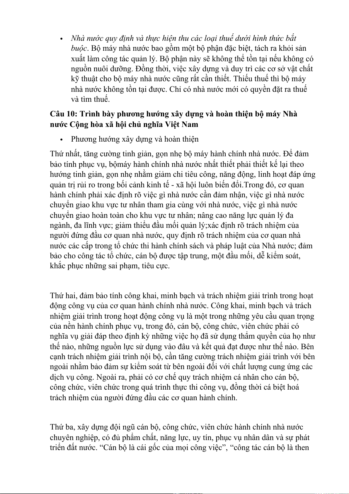Câu 10: Trình bày phương hướng xây dựng và hoàn thiện bộ máy Nhà