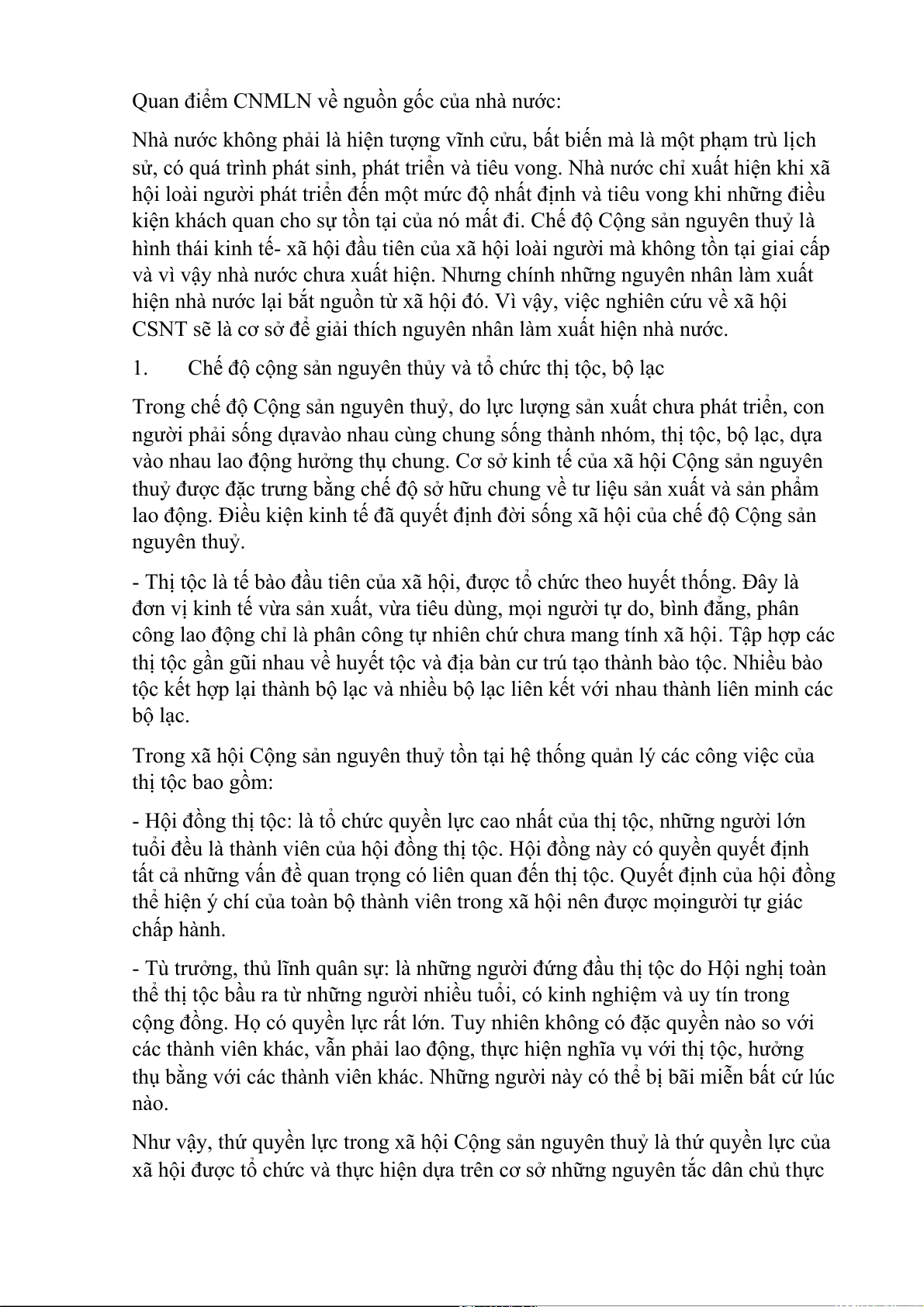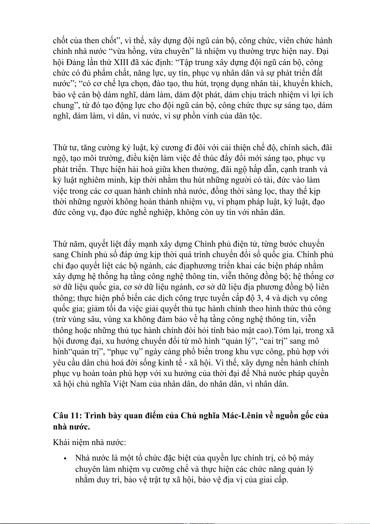 Câu 11: Trình bày quan điểm của Chủ nghĩa Mác-Lênin về nguồn gốc của nhà nước. Khái niệm nhà nước: