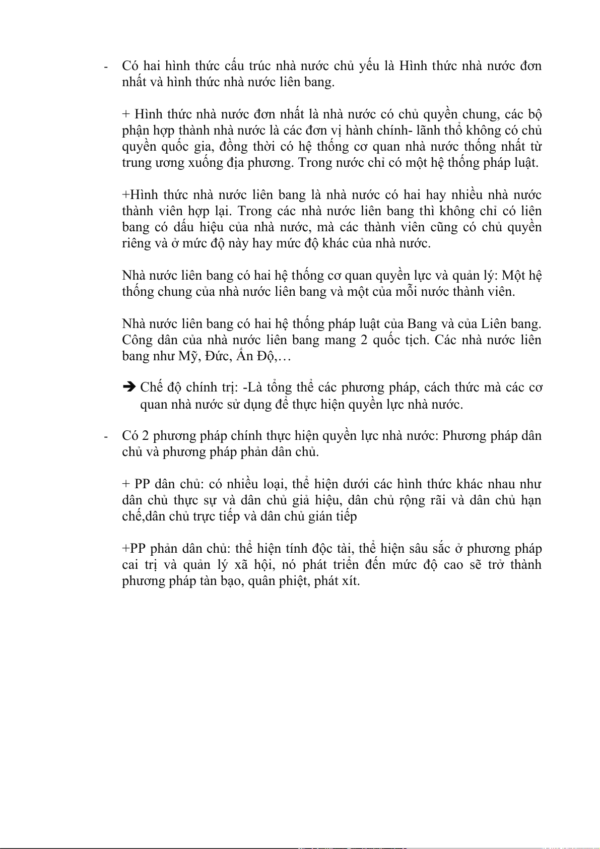 thức cấu trúc nhà nước và chế độ chính trị.