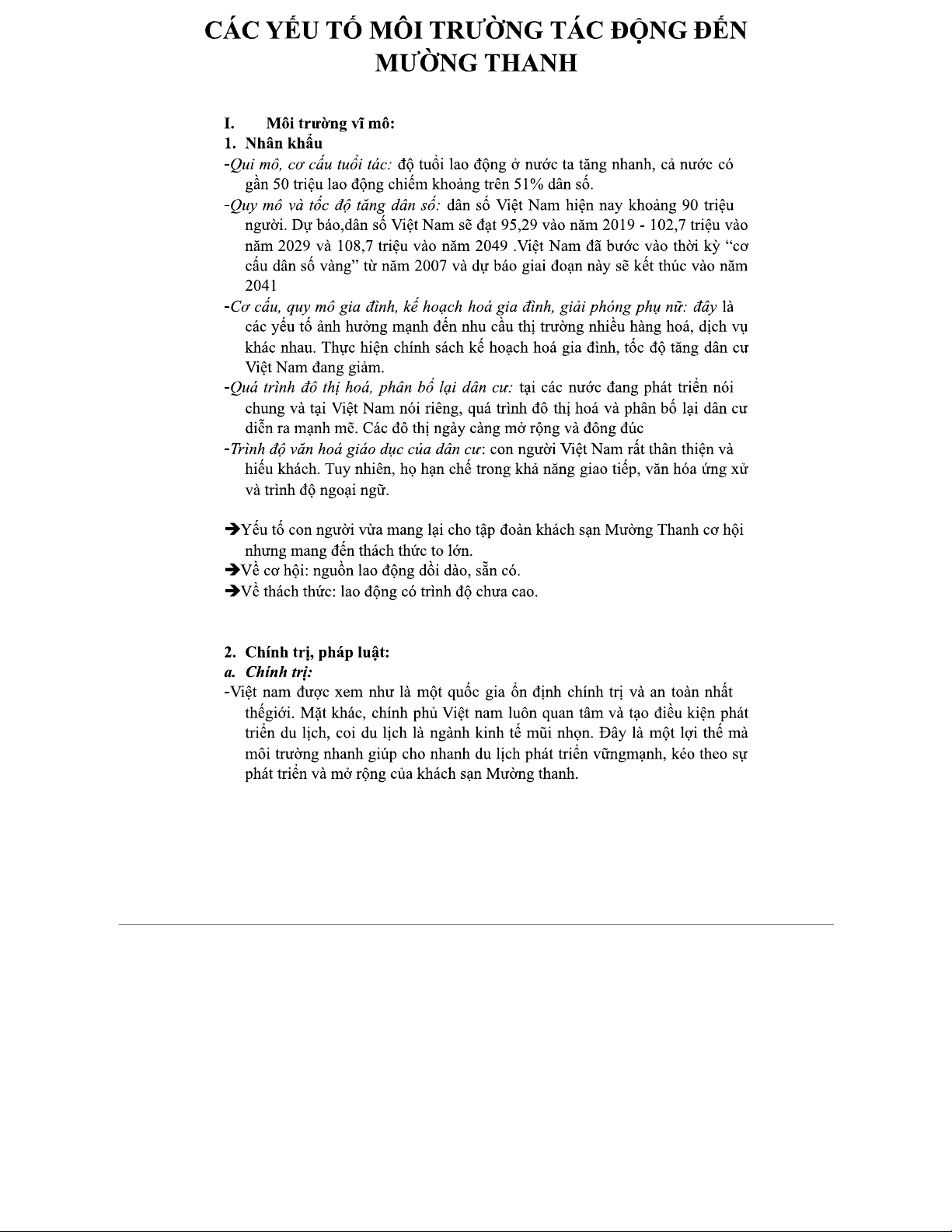 CÁC YẾU TỐ MÔI TRƯỜNG ẢNH HƯỞNG ĐẾN KHÁCH SẠN MƯỜNG THANH