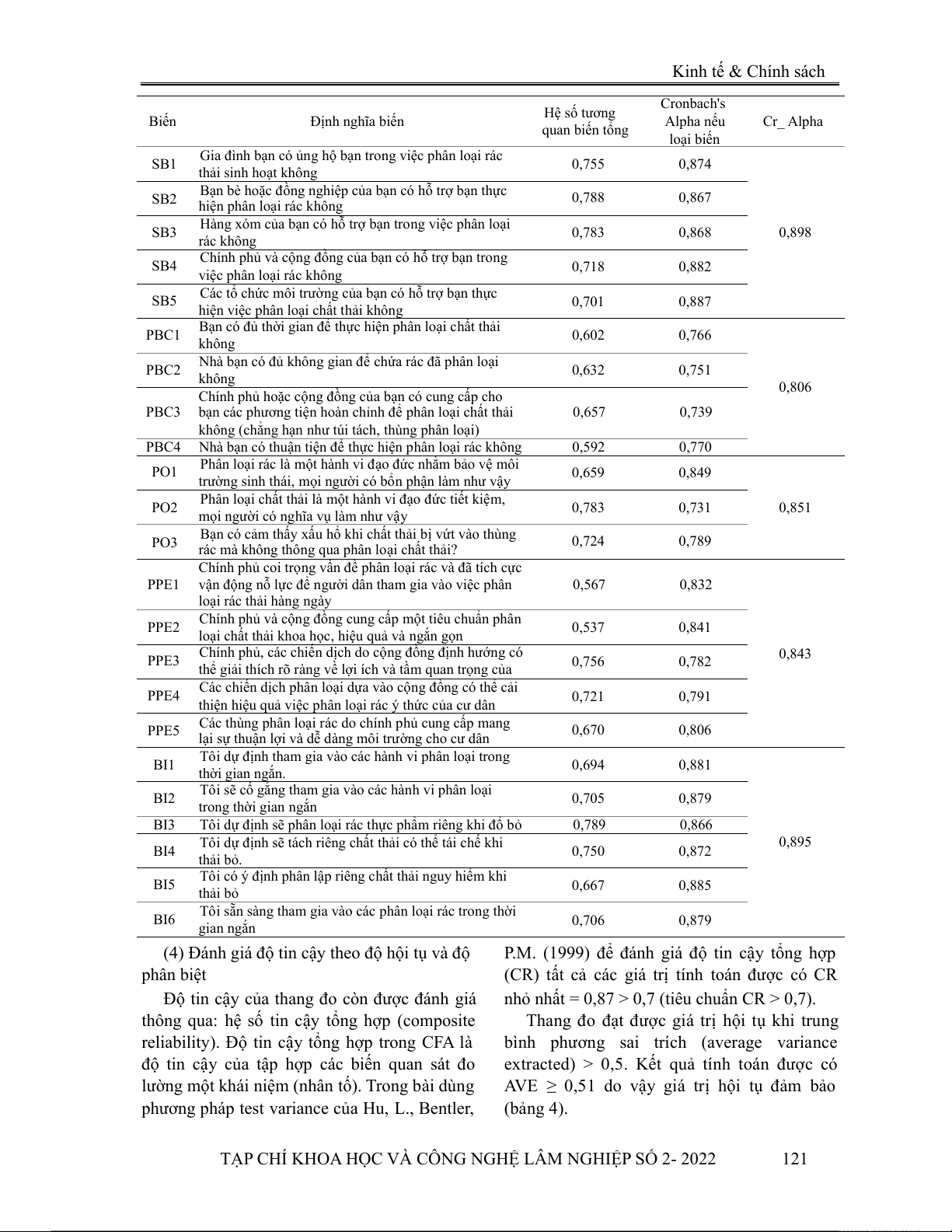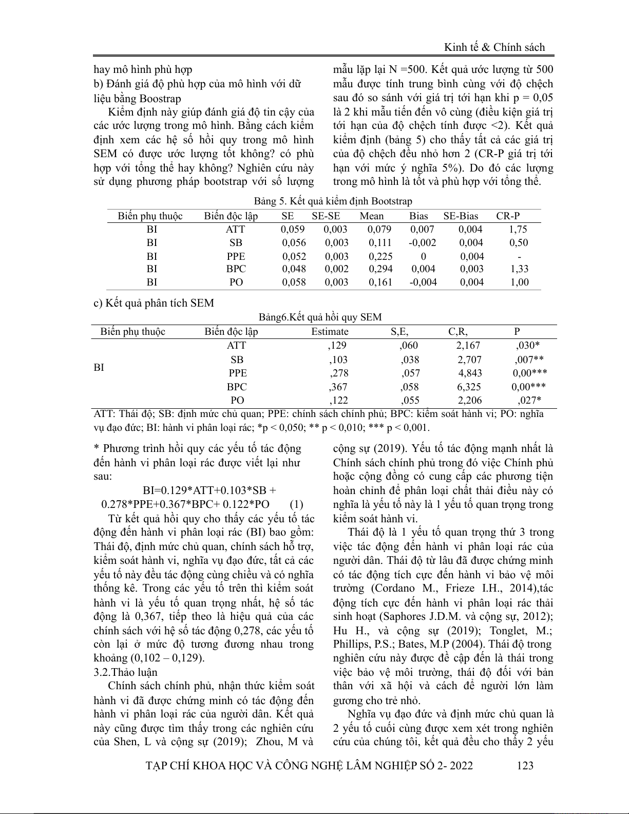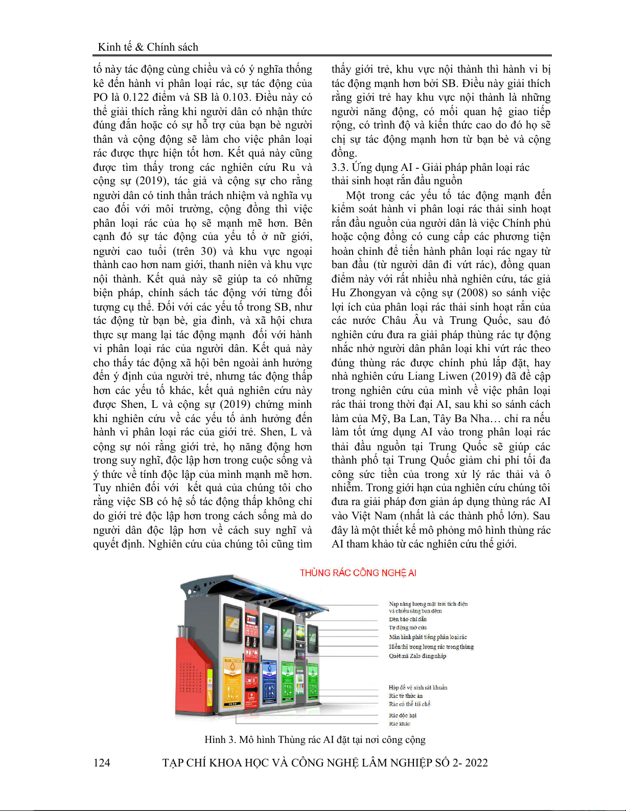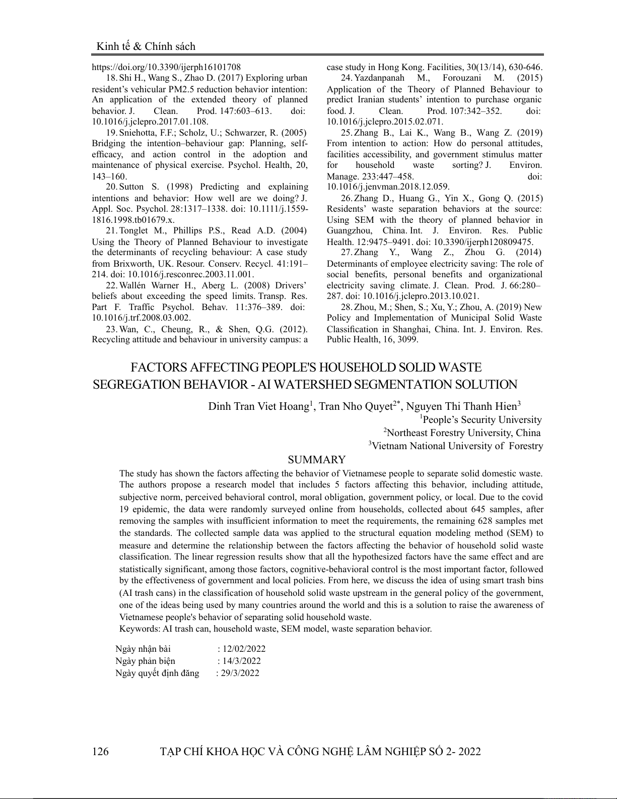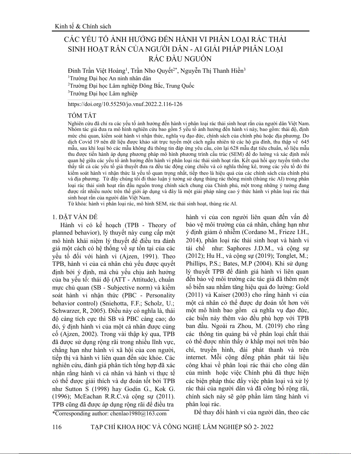 Keywords: AI trash can, household waste, SEM model, waste separation behavior. Ngày nhận bài : 12/02/2022 Ngày phản biện : 14/3/2022 Ngày quyết định đăng : 29/3/2022