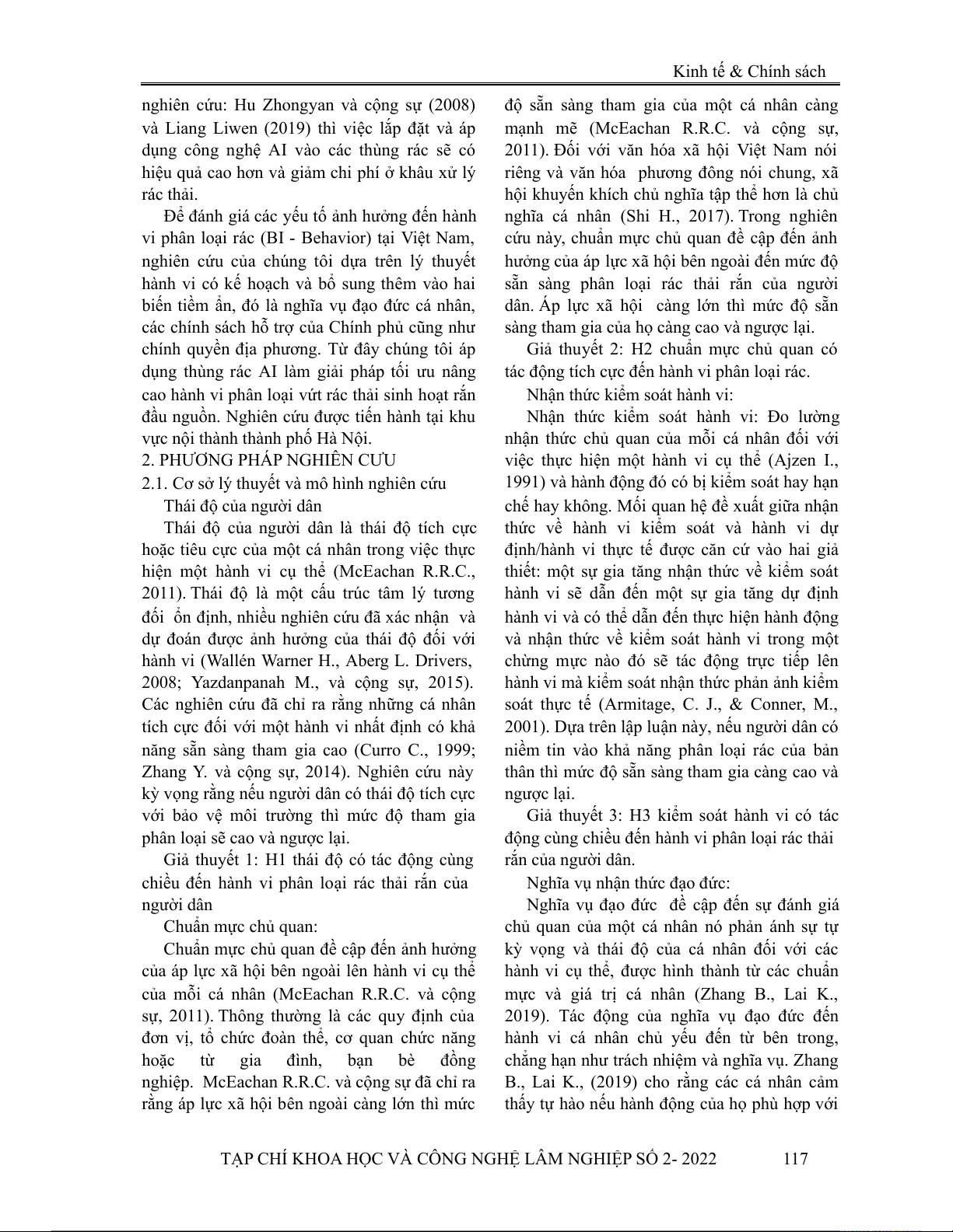 116 TẠP CHÍ KHOA HỌC VÀ CÔNG NGHỆ LÂM NGHIỆP SỐ 2- 2022 Kinh tế & Chính sách