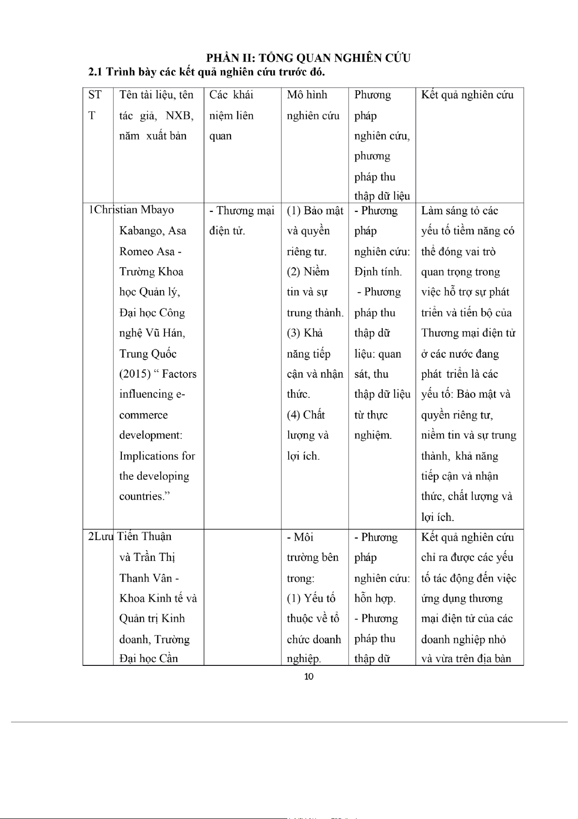 2.1 Trình bày các kết quả nghiên cứu trước