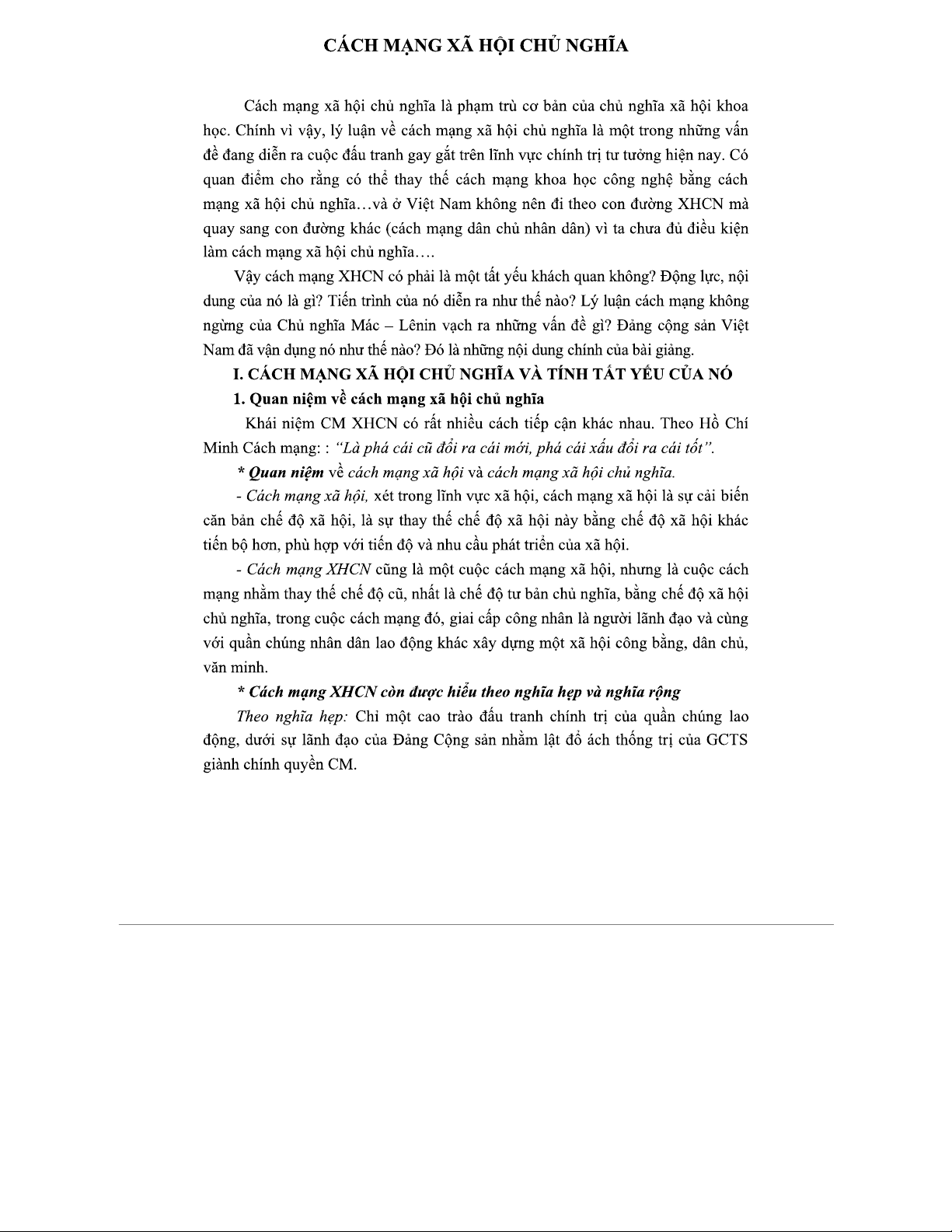 CÁCH MẠNG XÃ HỘI CHỦ NGHĨA: Lý Thuyết và Thực Tiễn (MDCN 101)