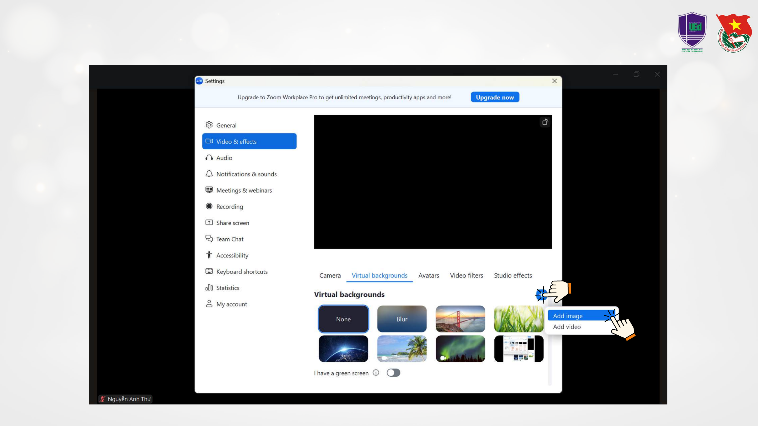 Bước 3: Chọn Vitural backgrounds