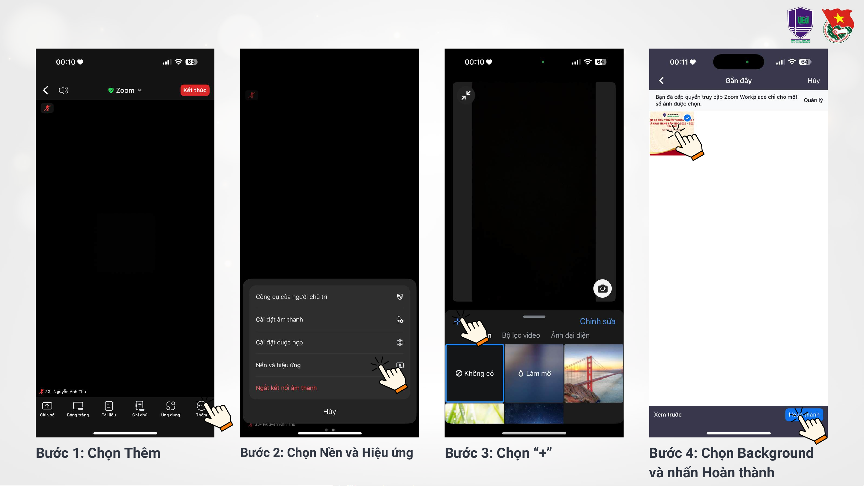 Bước 5: Chọn Background - Nhấn Open HOÀN THÀNH TRÊN ĐIÊ.N THOA.I Bước 1: Chọn Thêm