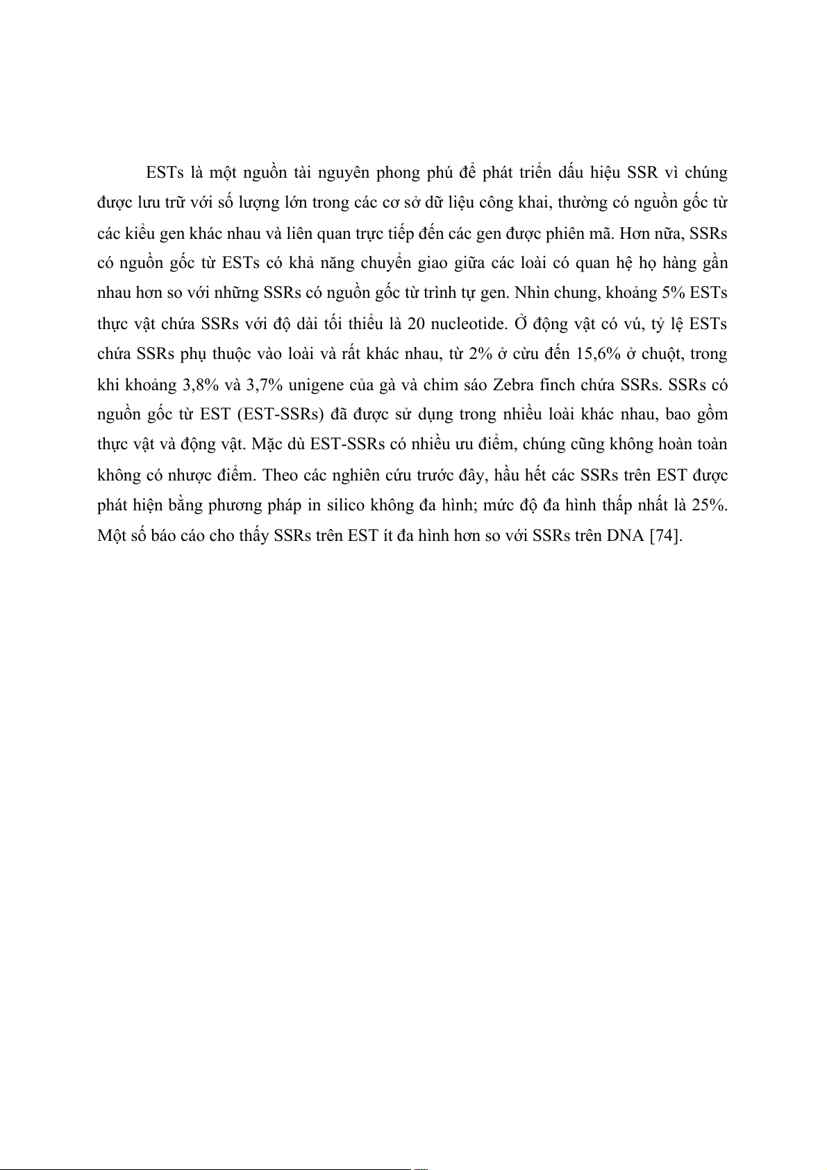 nhau hơn so với những SSRs có nguồn gốc từ trình tự gen. Nhìn chung, khoảng 5% ESTs