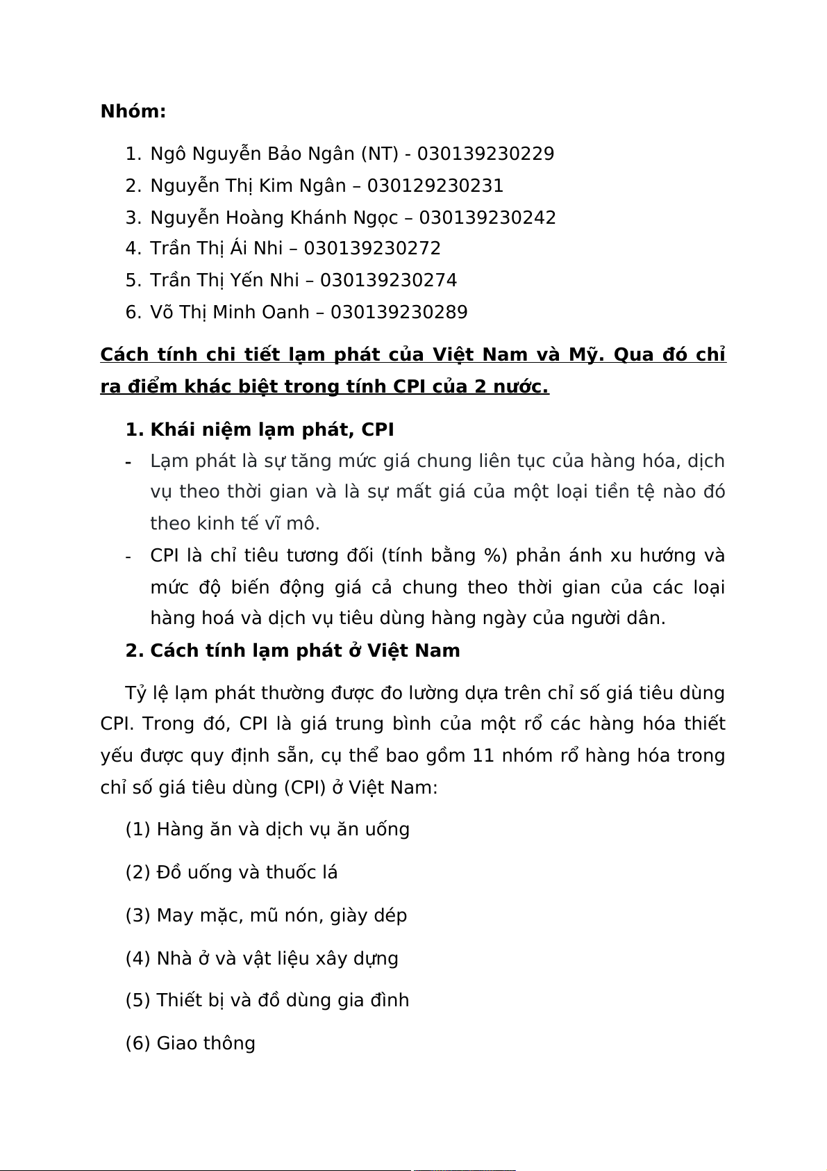 1. Khái niệm lạm phát, CPI -