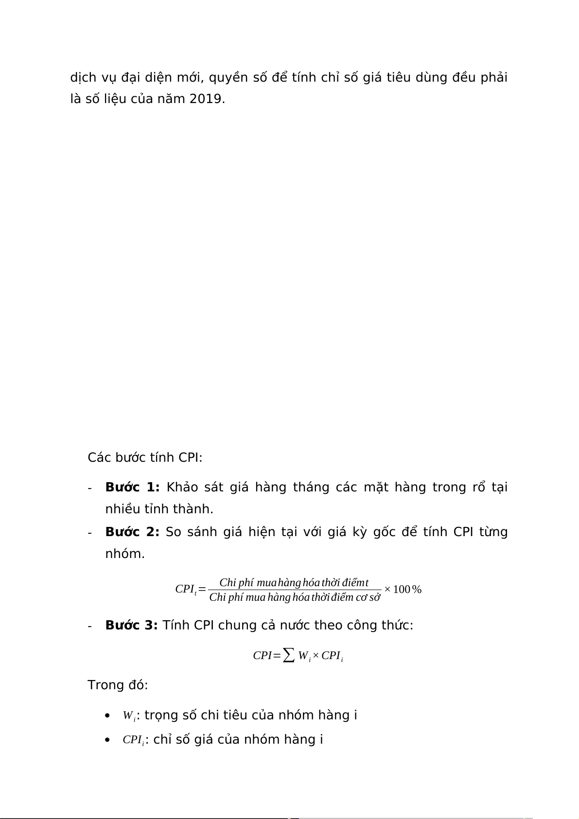 là số liệu của năm 2019. Các bước tính CPI: