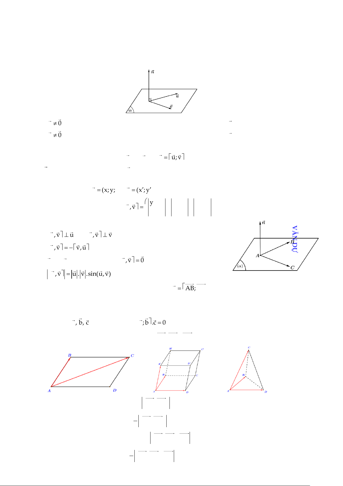 là một véctơ được xác định và kí hiệu như sau: y z z x x y u,v = , , . y z z x x y V Ũ + Tính chất V ĂN • u,v ⊥ u và u,v ⊥ v . D = − Ự • u,v v,u .