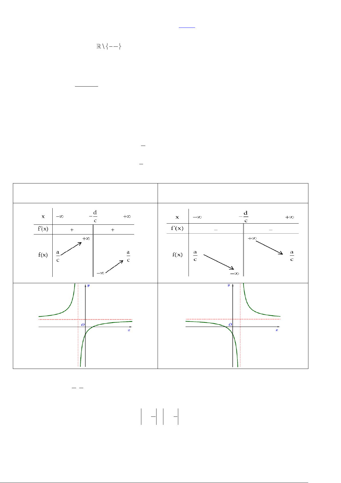 Hàm phân thức bậc 1 / bậc 1 dạng y = cx + d a b c d ad − bc Đạo hàm y = = .