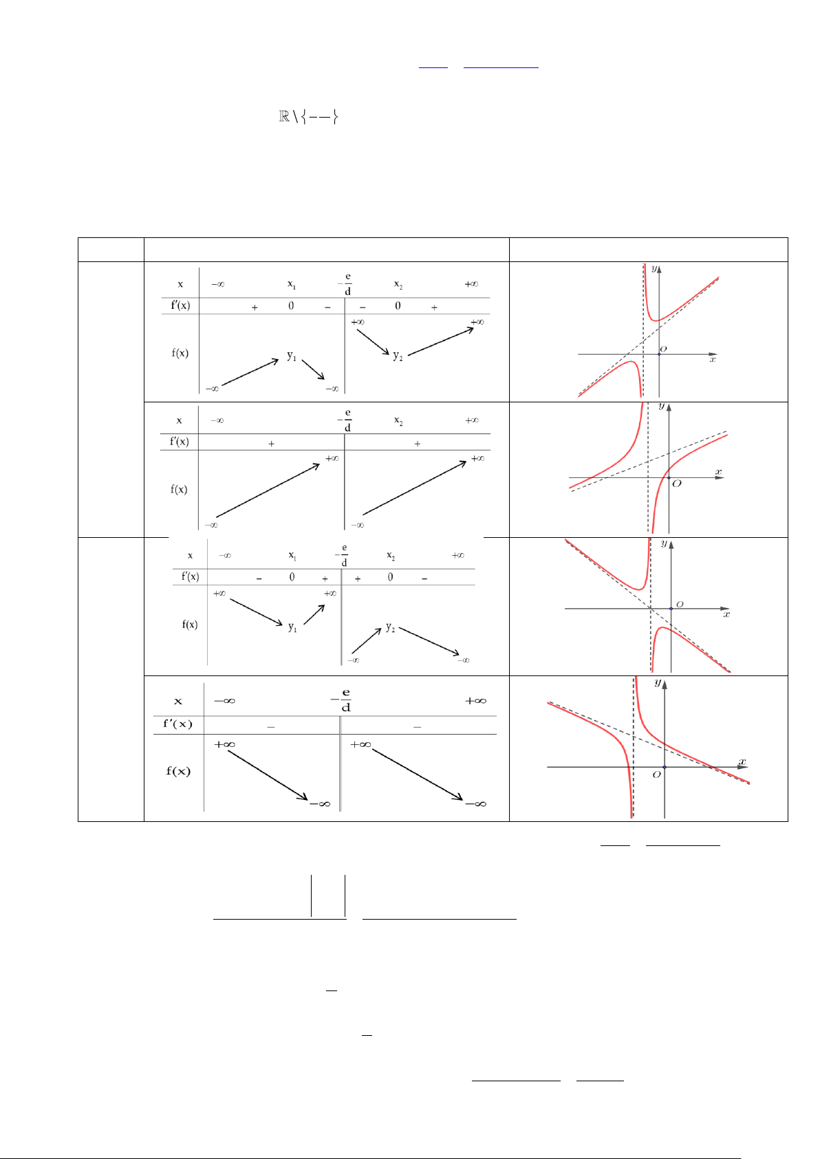 + Đường thẳng y = ax + b , với a 0 là tiệm cận xiên của (C) , nếu lim f(x) − (ax + b) = 0 . x→ − Chú ý ax + b d a + Đồ thị y = x = −
