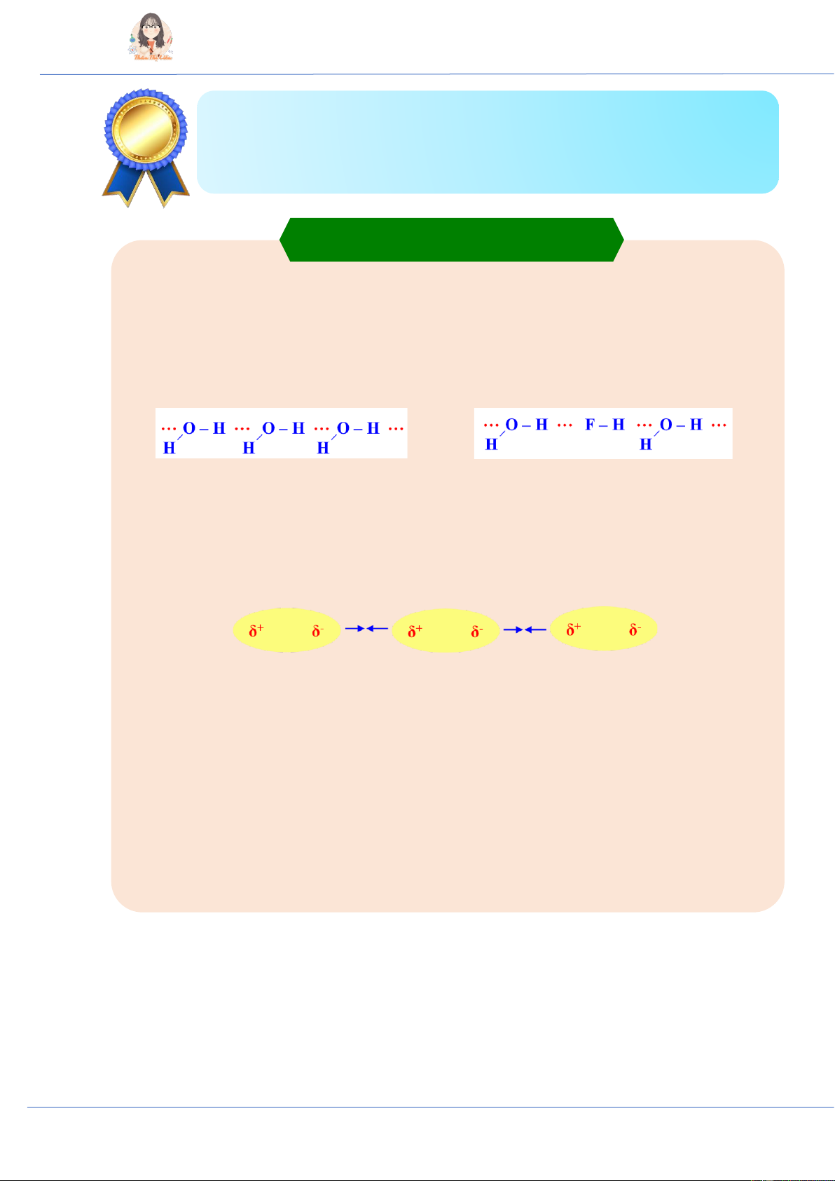 Liên kết hydrogen giữa các phân tử H2O Liên kết hydrogen giữa phân tử H2O và HF