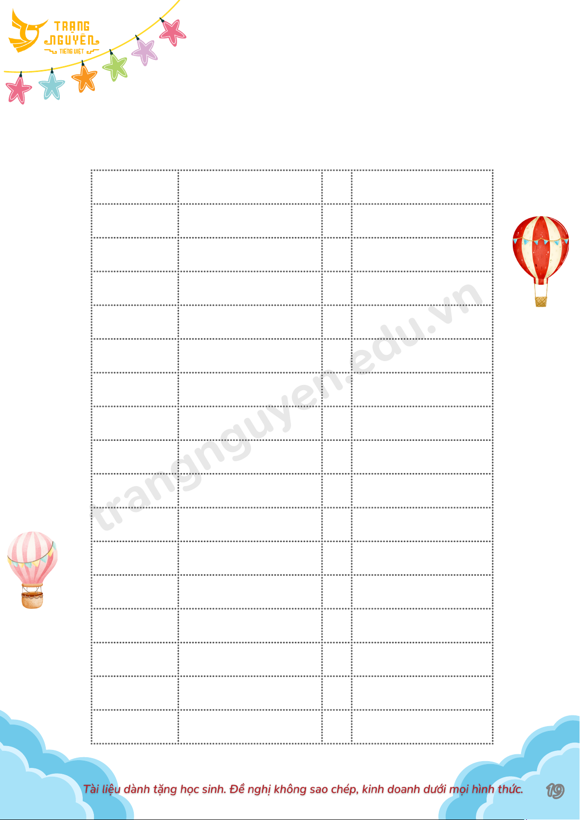 Phần 4: Cặp từ có nghĩa trái ngược nhau 16 chậm chạp >< nhanh nhẹn 17 khoẻ mạnh >< ốm yếu 18 kiêu căng >< khiêm tốn 19 thận trọng >< liều lĩnh 20 nhút nhát >< bạo dạn 21 ẩm ướt >< hanh khô 22 biến mất >< xuất hiện 23 ngay ngắn >< xiêu vẹo 24 bắt đầu >< kết thúc tra 25 ngnguyen.edu.vn bận bịu >< rảnh rỗi 26 phi pháp >< hợp pháp 27 thưa thớt >< dày đặc 28 nhỏ bé >< to lớn 29 mập mạp >< gầy gò 30 bí mật >< công khai 31 thong thả >< vội vàng 32 cá nhân >< tập thể 18 1 www.trangnguyen.edu.vn