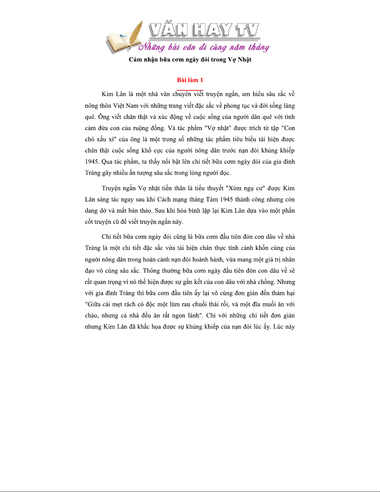Cảm nhận bữa cơm ngày đói trong tác phẩm Vợ Nhặt (4 mẫu)
