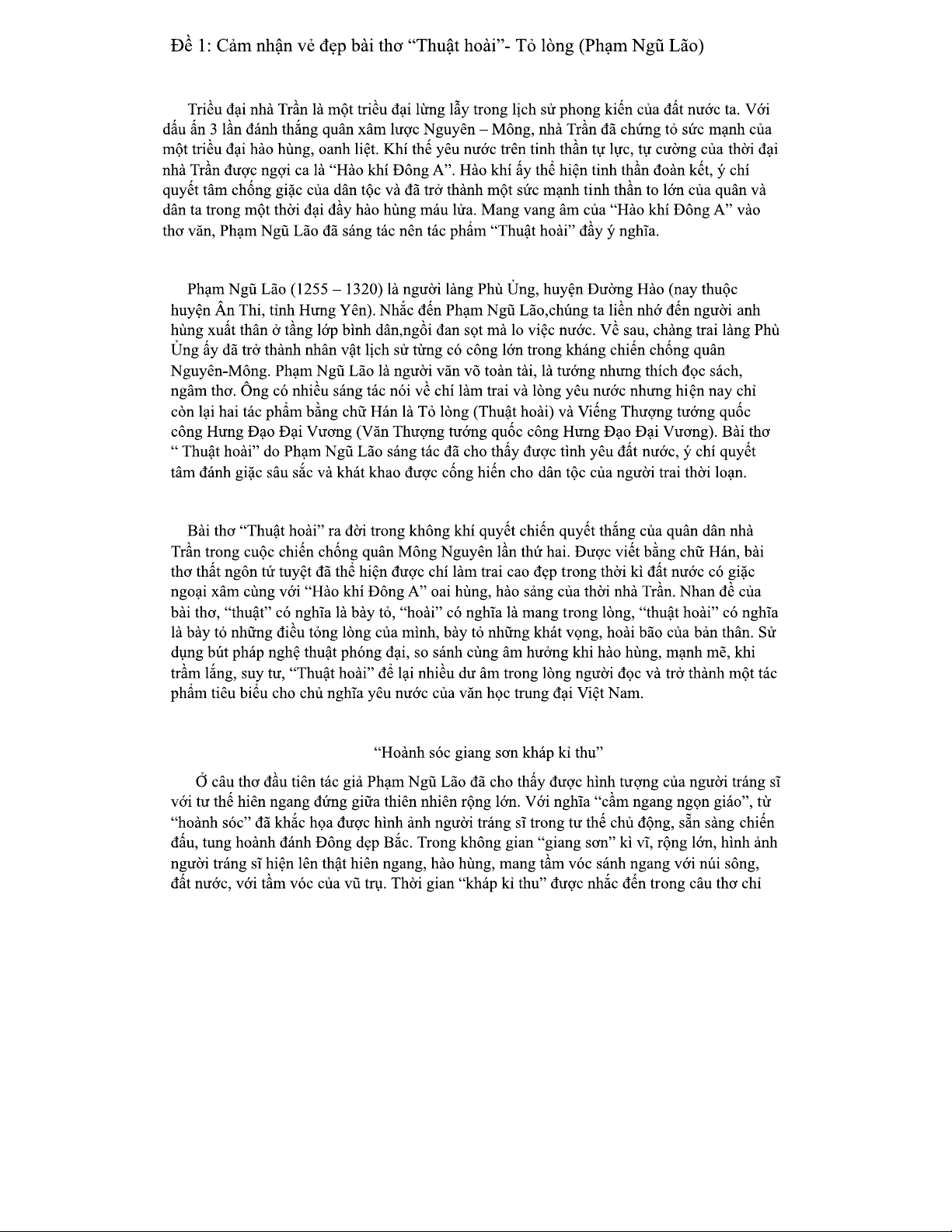 Cảm Nhận Vẻ Đẹp Bài Thơ "Thuật Hoài" - Tỏ Lòng (Phạm Ngũ Lão)