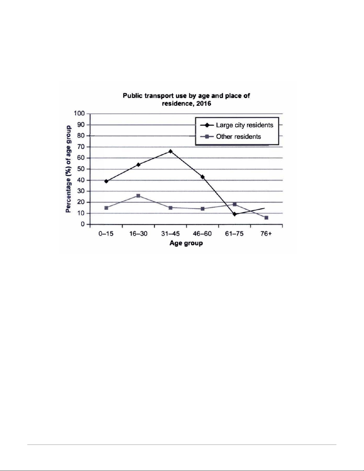 with the highest difference for 31–45 year olds: 66% of city dwellers used public