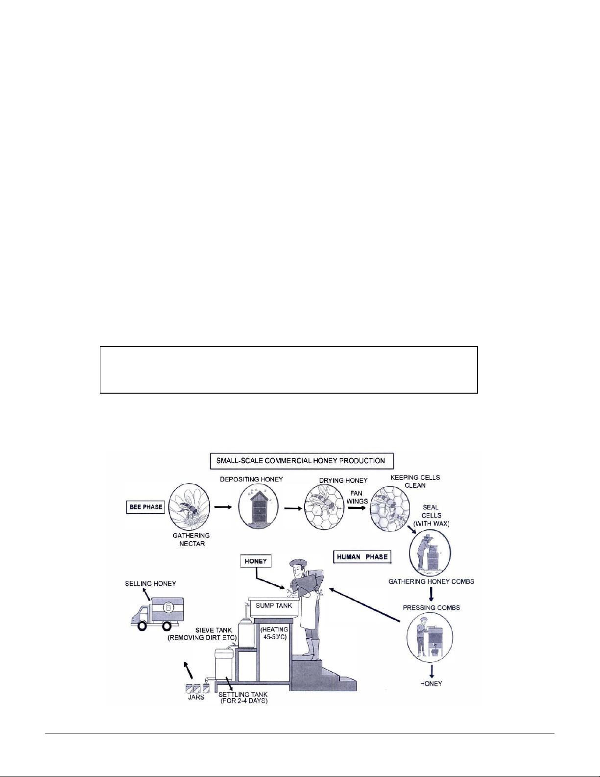 The diagram below shows how honey is made in small-scale commercial production.