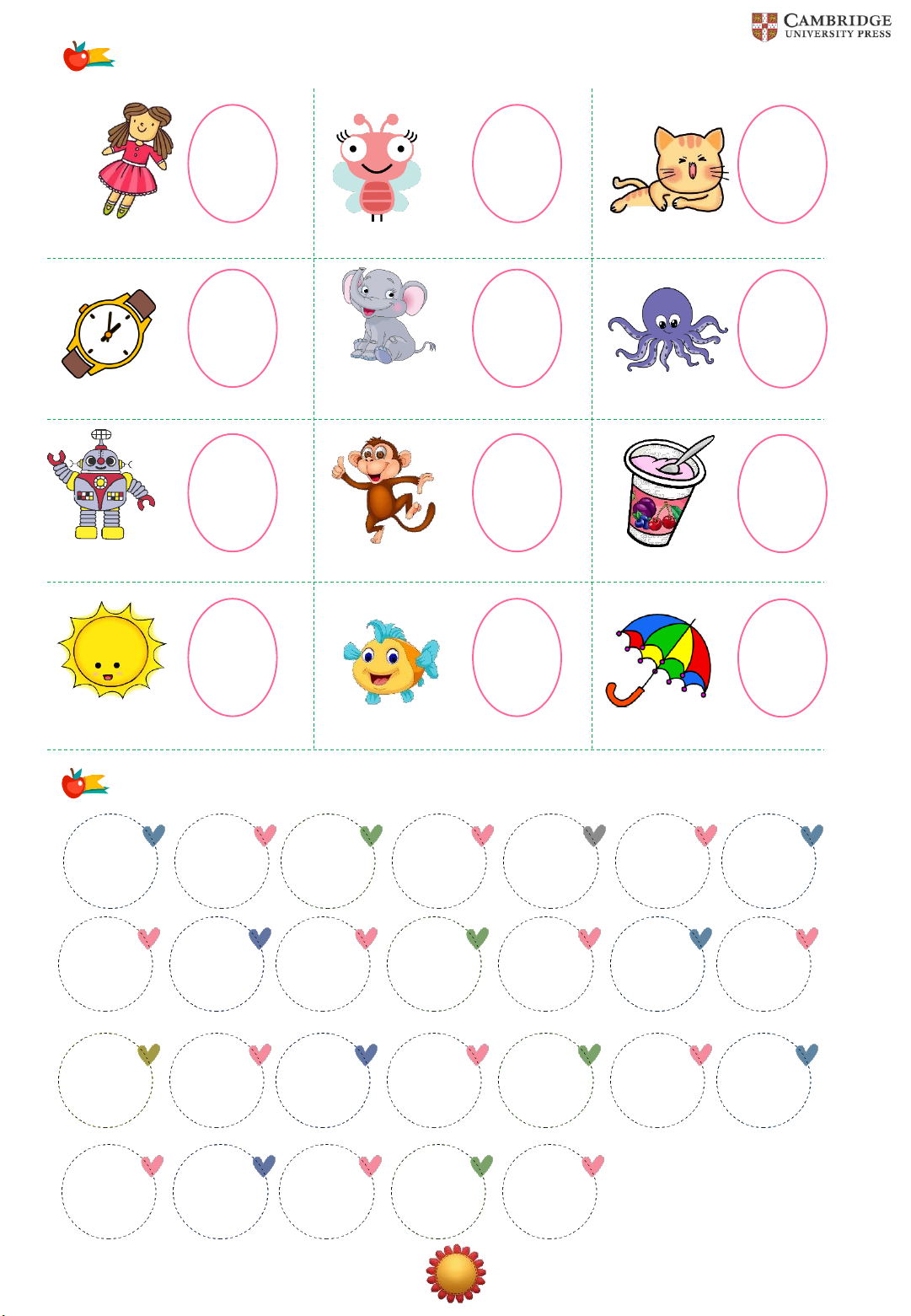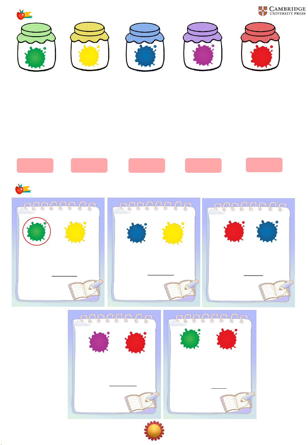 Exercise 7: Look and write yes or no. 1. The apple is red. 2. The monster is blue. 3. The sun is yellow. ________ y _ e _ s ______ ________________ ________________ 4. The van is purple. 5. The frog is green. 6. The cat is purple. ________________ ________________ ________________