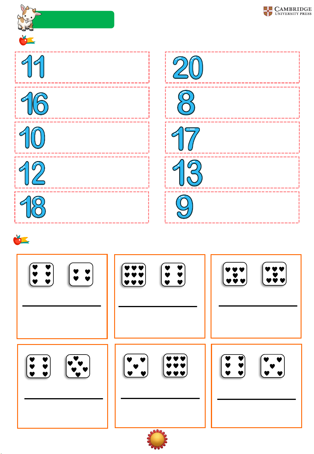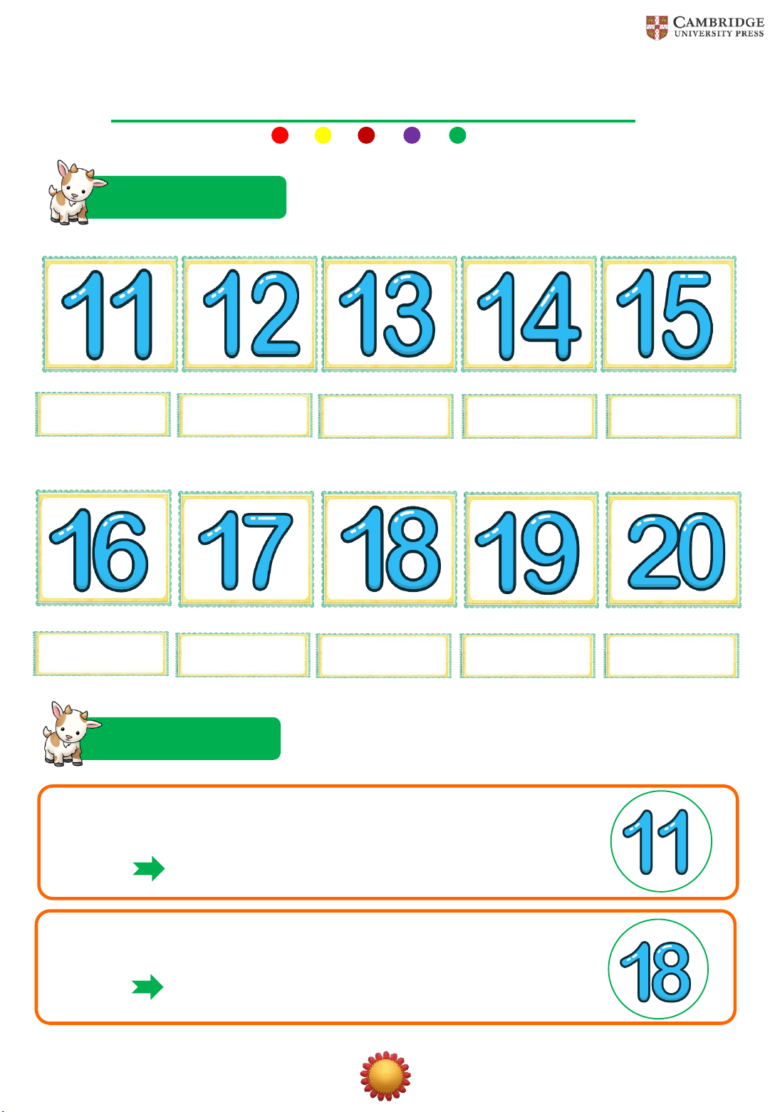 Exercise 4: Look and complete. 8 Exercise 5: Look and write. 5 10 1 20 ___ f _ iv _ e _______ ____________ ____________ ____________ 13 15 8 18 ____________ ____________ ____________ ____________