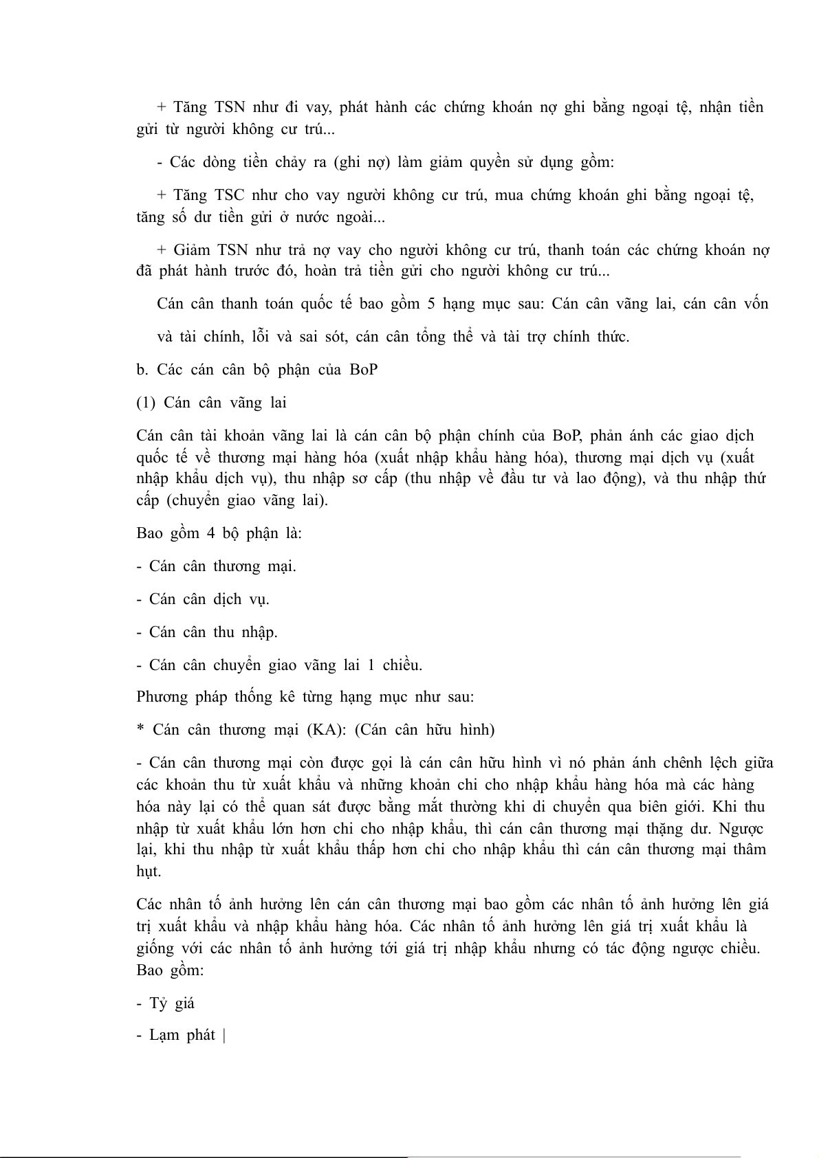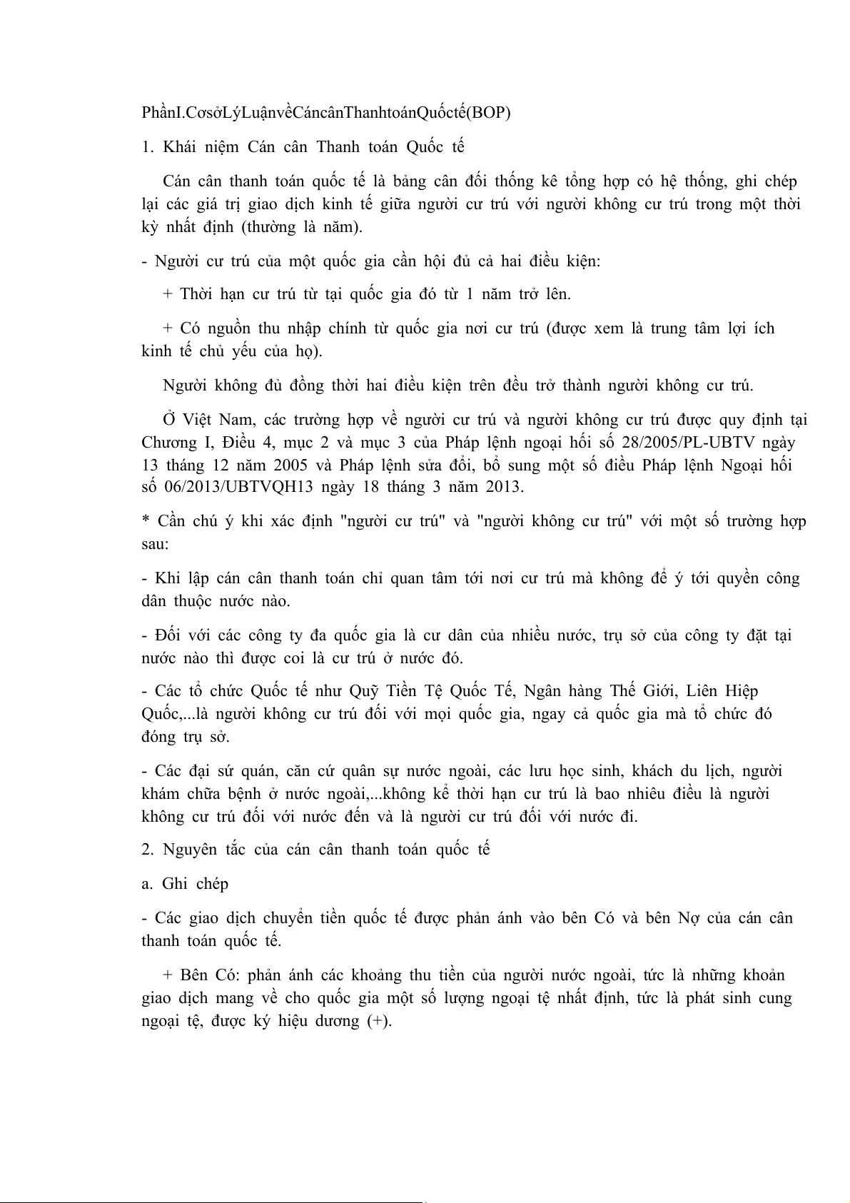 Phần I. Cơ sở Lý Luận về Cán cân Thanh toán Quốc tế (BOP)