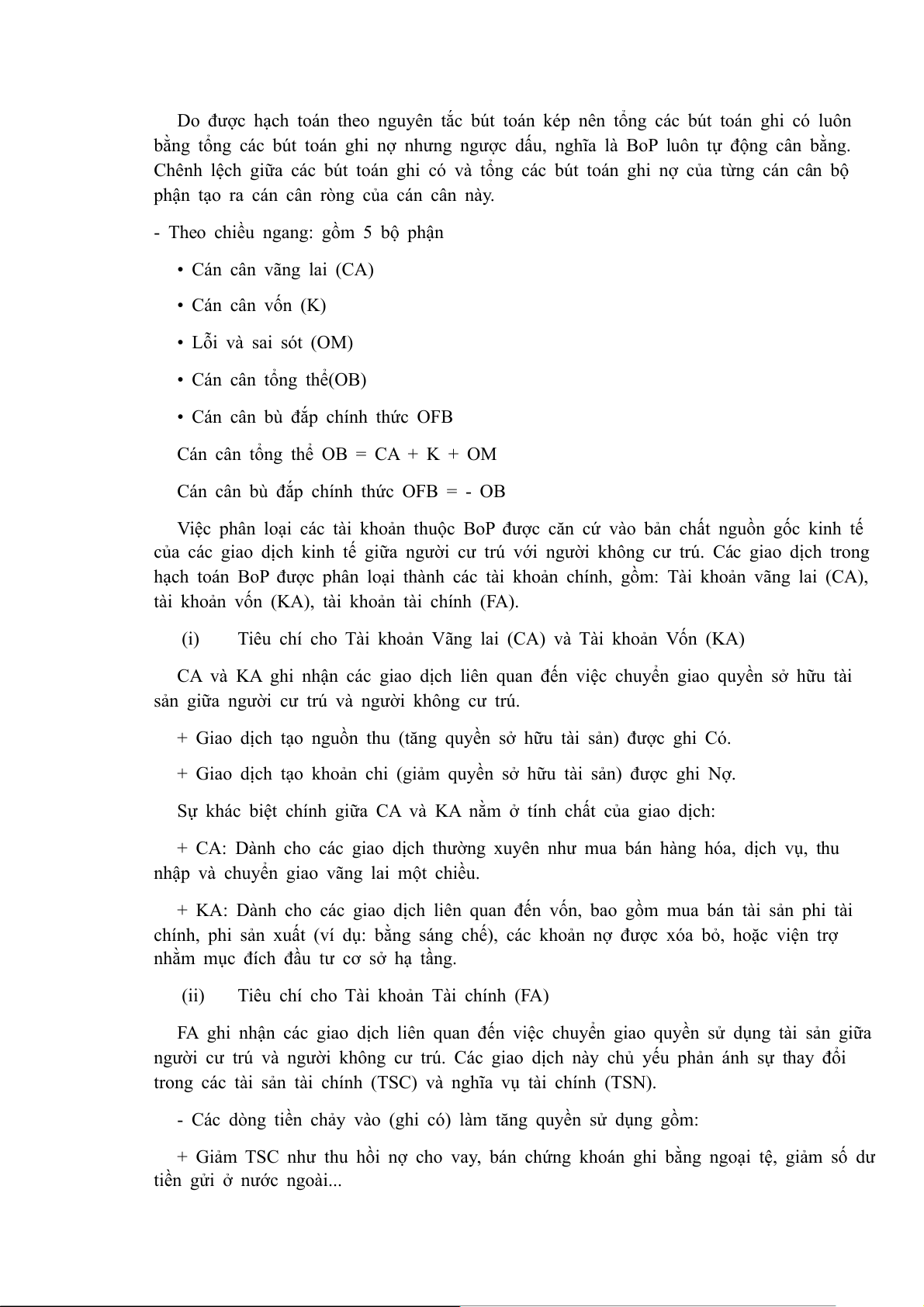 - Theo chiều ngang: gồm 5 bộ phận • Cán cân vãng lai (CA) • Cán cân vốn (K) • Lỗi và sai sót (OM) • Cán cân tổng thể(OB)
