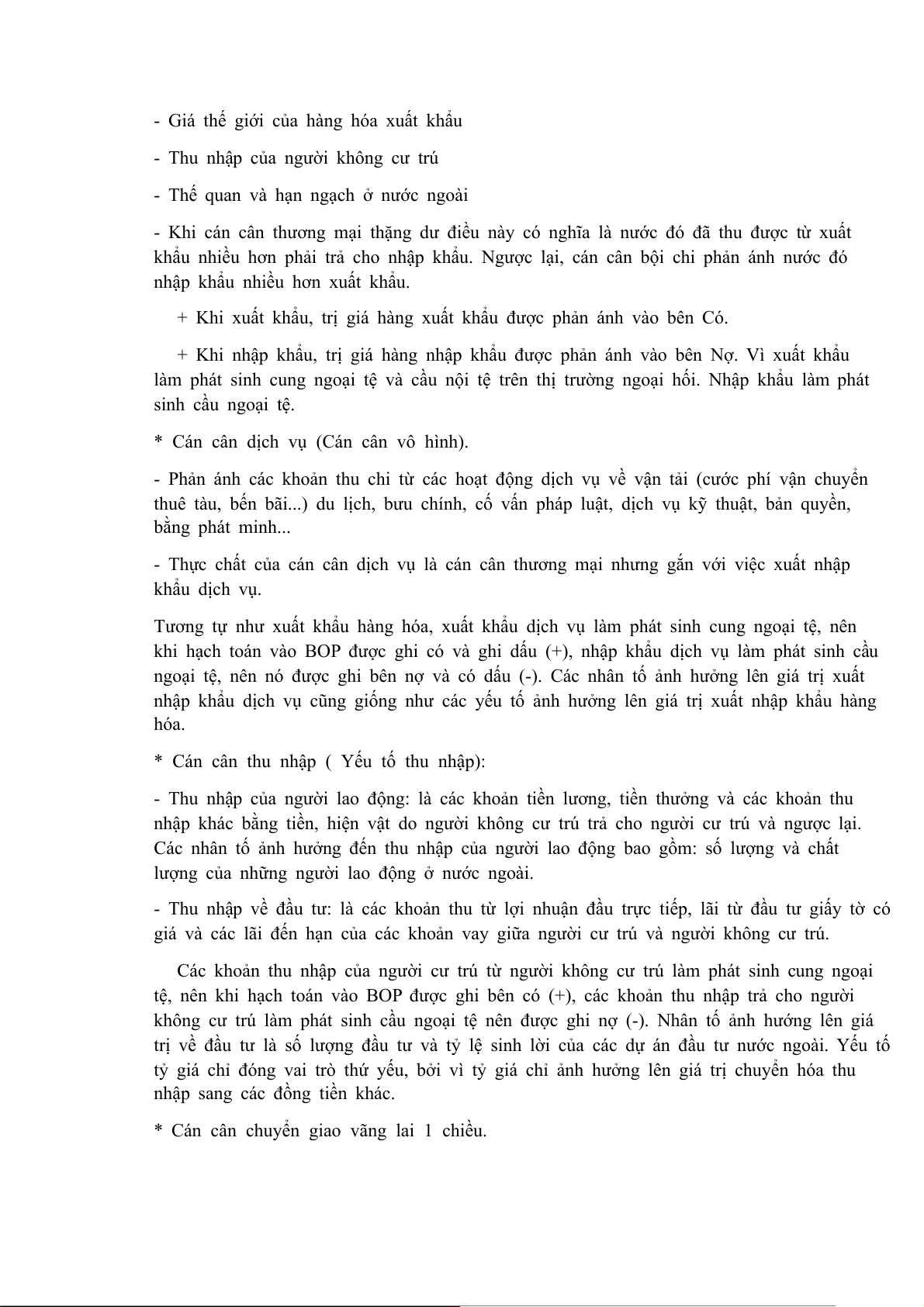- Kết quả của cán cân thanh toán mang dấu +: thu ngoại tệ của quốc gia đã (sẽ) tăng thêm.