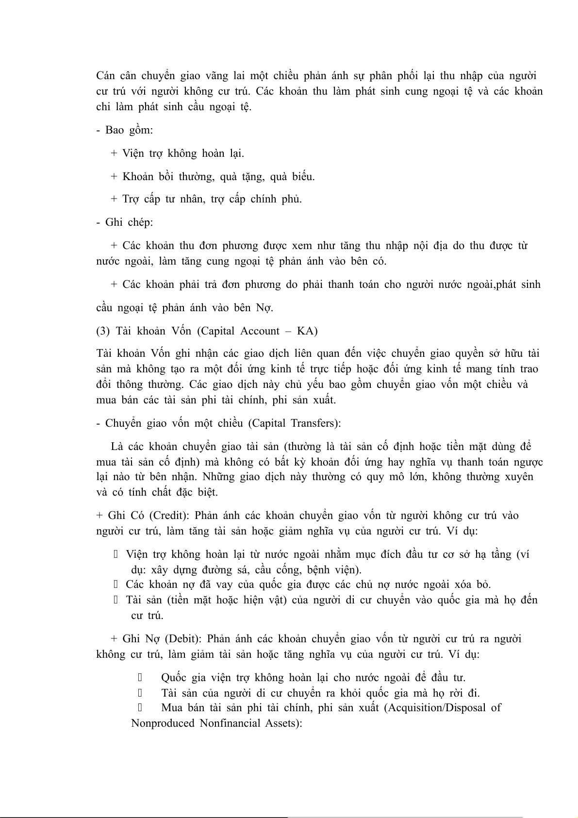 - Chuyển giao vốn một chiều (Capital Transfers):