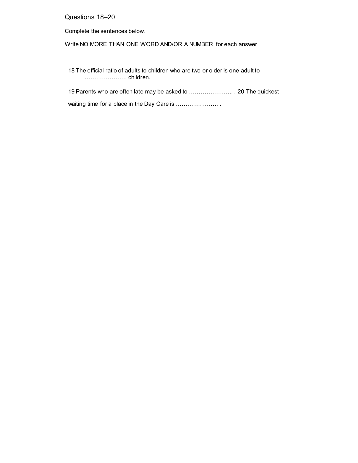 waiting time for a place in the Day Care is …………………. . SECTION 3 Questions 21–30 Questions 21 and 22
