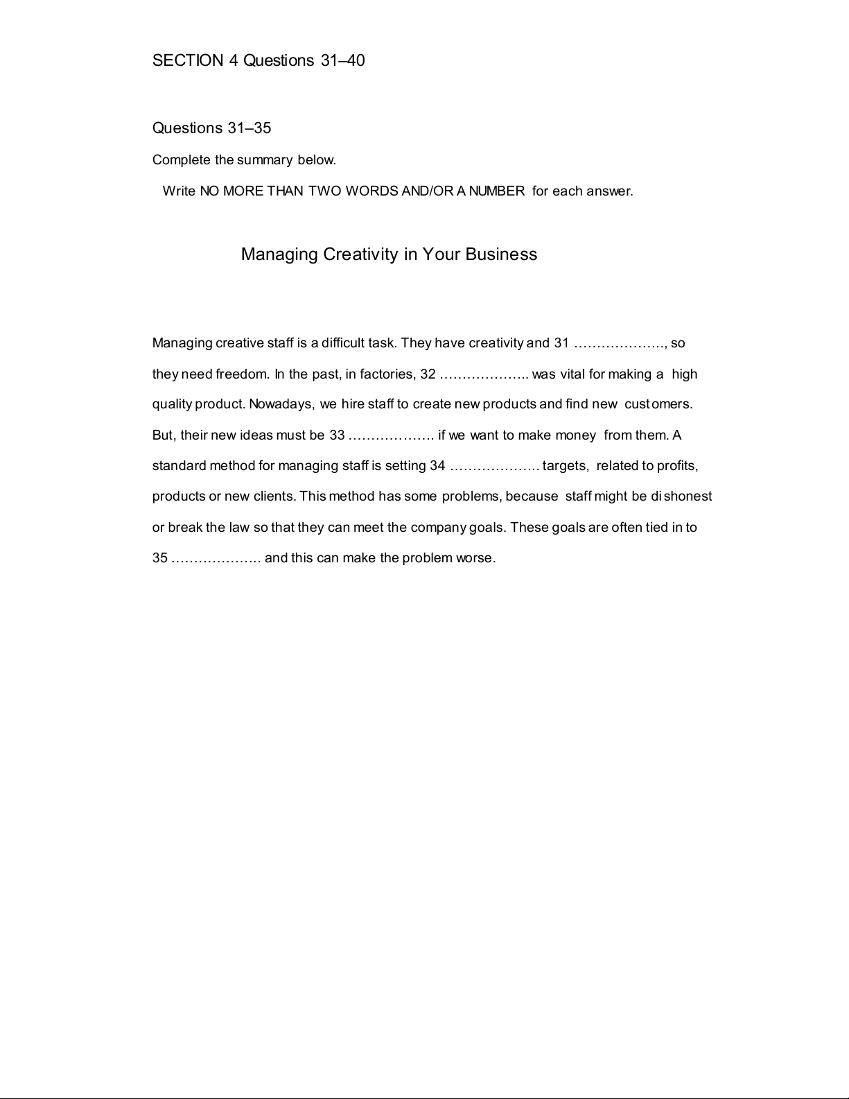 …………………… for his assignment SECTION 4 Questions 31–40 Questions 31–35 Complete the summary below.