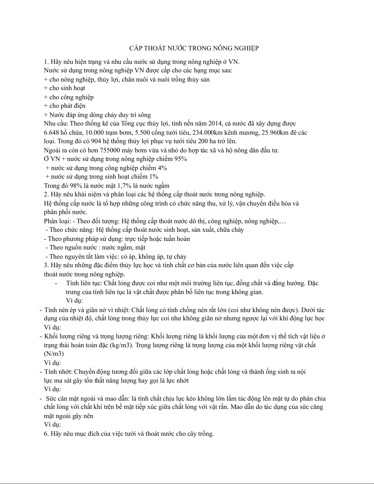 CẤP THOÁT NƯỚC TRONG NÔNG NGHIỆP