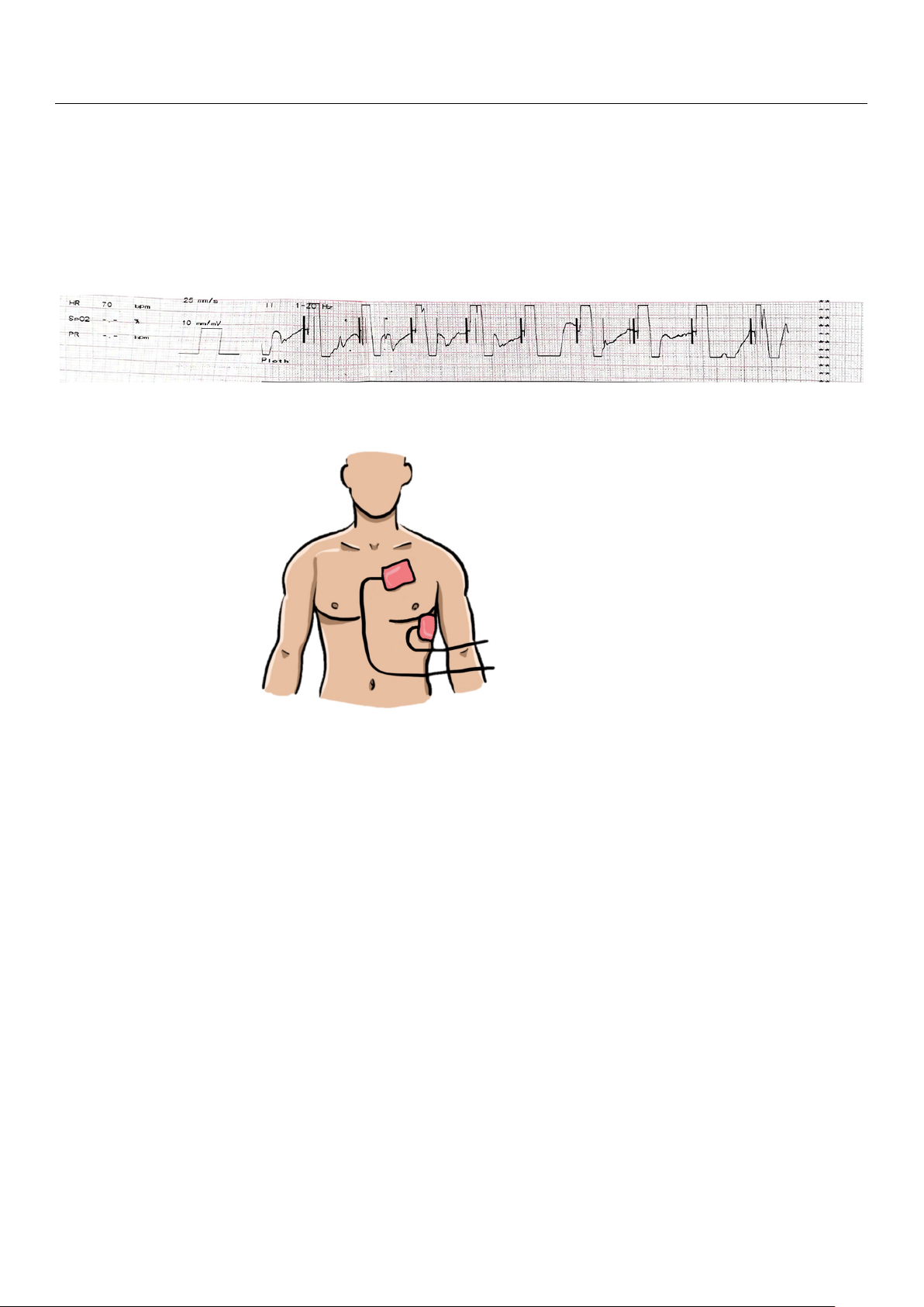 a clear ST segment and broad T wave. A pulse rate manually confirmed in the femoral